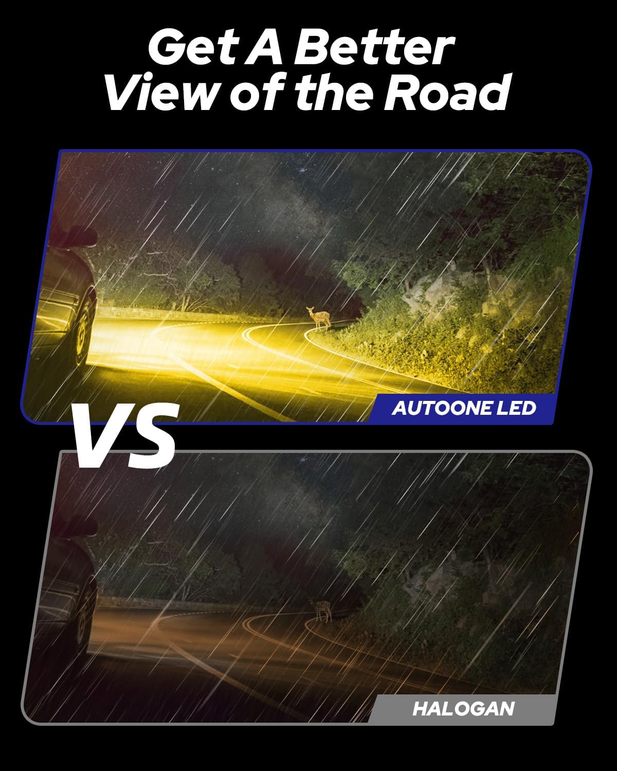 【Outstanding Brightness】-AUTOONE H11 yellow fog lights are equipped with CSP LED chips, which provide 400% brighter light output in 3000K amber yellow. Making your vision range wider and farther