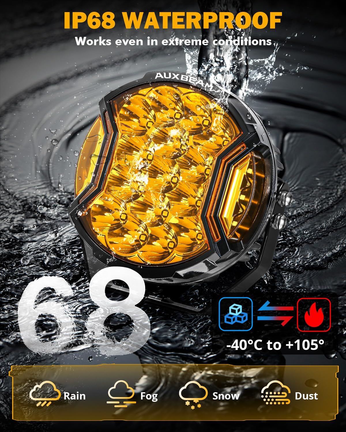 - 【IP68 TRIPLE WATERPROOF SOLUTION】We’ve continuously improved our waterproof system based on user feedback. Our LED driving light, with its 100% sealed design, can withstand submersion and harsh conditions without damage from rain, fog, moisture, or dust. Trust in our rigorous quality inspection for a product that truly lasts.