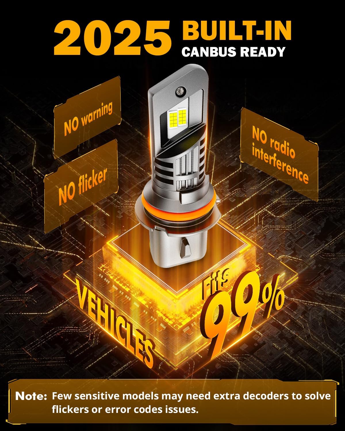 99% Super Compatible: Built-in intelligent decoding chips, highly compatible with 99% models’ system without causing errors and flickers. Note:1% sensitive models still need decoders. Please message auxbeam to help slove the problem.