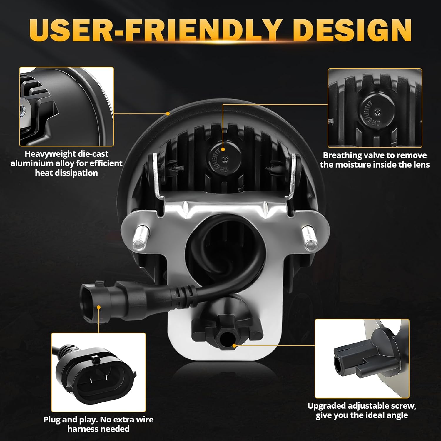- 【Crystal Clear Cutoff】LED fog lights feature meticulously engineered cutoff design, ensuring sharp, glare-free boundaries for precise illumination. Navigate confidently with focused brightness.
