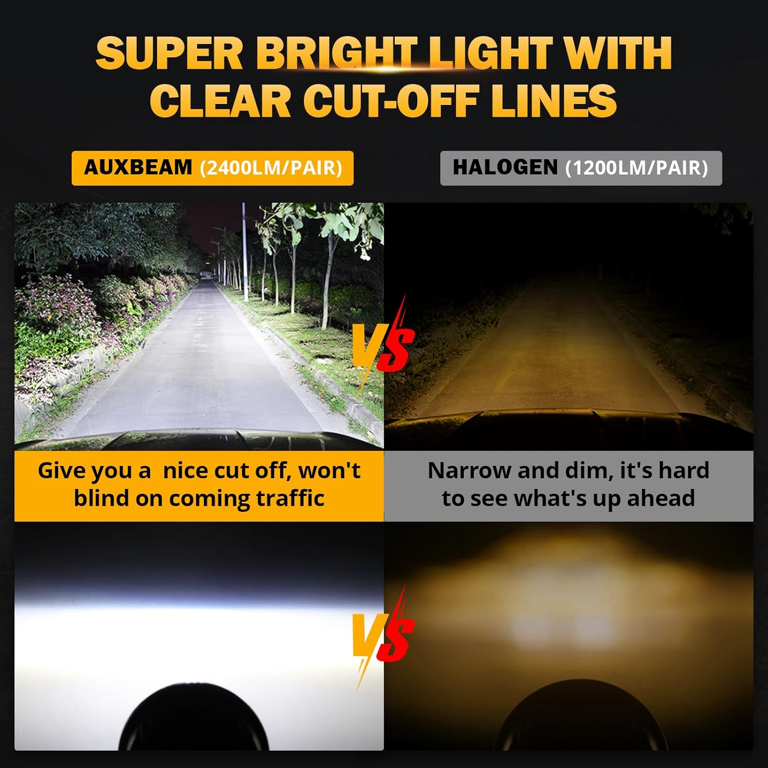 【Brilliant Brightness】 Equipped with premium PC lenses, auxbeam fog lights provide crystal-clear optics and precise light distribution. The high-output fog lights penetrate through fog or adverse weather, enhancing your driving safety.