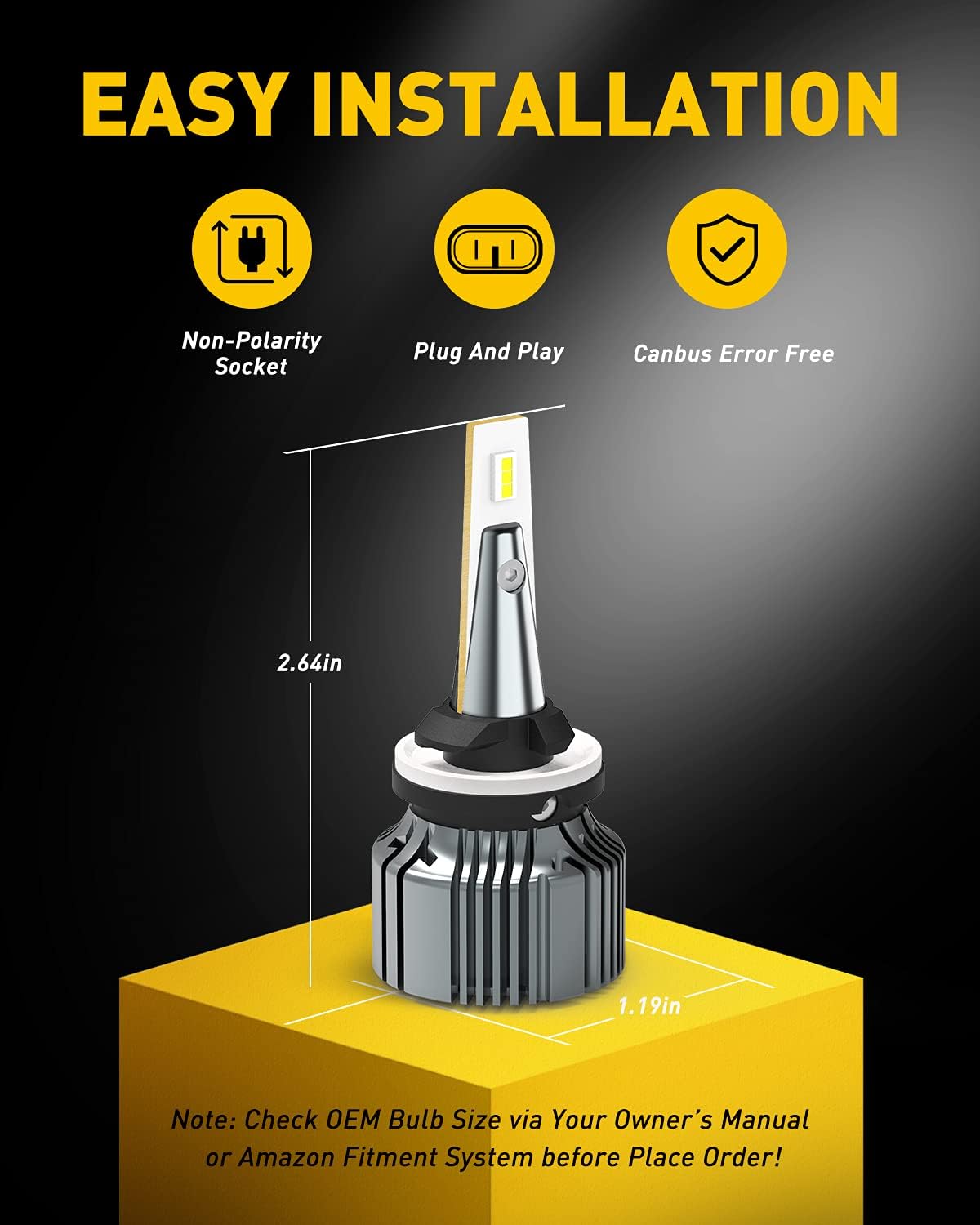 - Easy Installation: These 899 LED fog light bulbs are non-polar design and plug & play. Ultra-thin copper circuit board and almost 1:1 same light filament position effectively simulates stock 880 LED bulbs’ beam pattern, come out 360° full angle illumination. Upgraded intelligent driver makes these 880 fog lights compatible with 98% vehicles without error warnings or radio interference