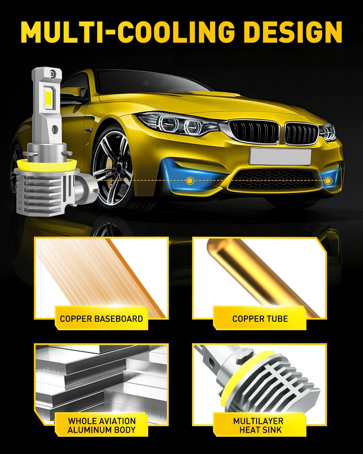 Effective Heat Dissipation: Equipped with intelligent temperature control, premium aviation-grade aluminum, and multi-layer cooling fins, these fog lights provide fast and stable heat dissipation. Helps prevent lamp body burn-out by overheating and extends bulb life