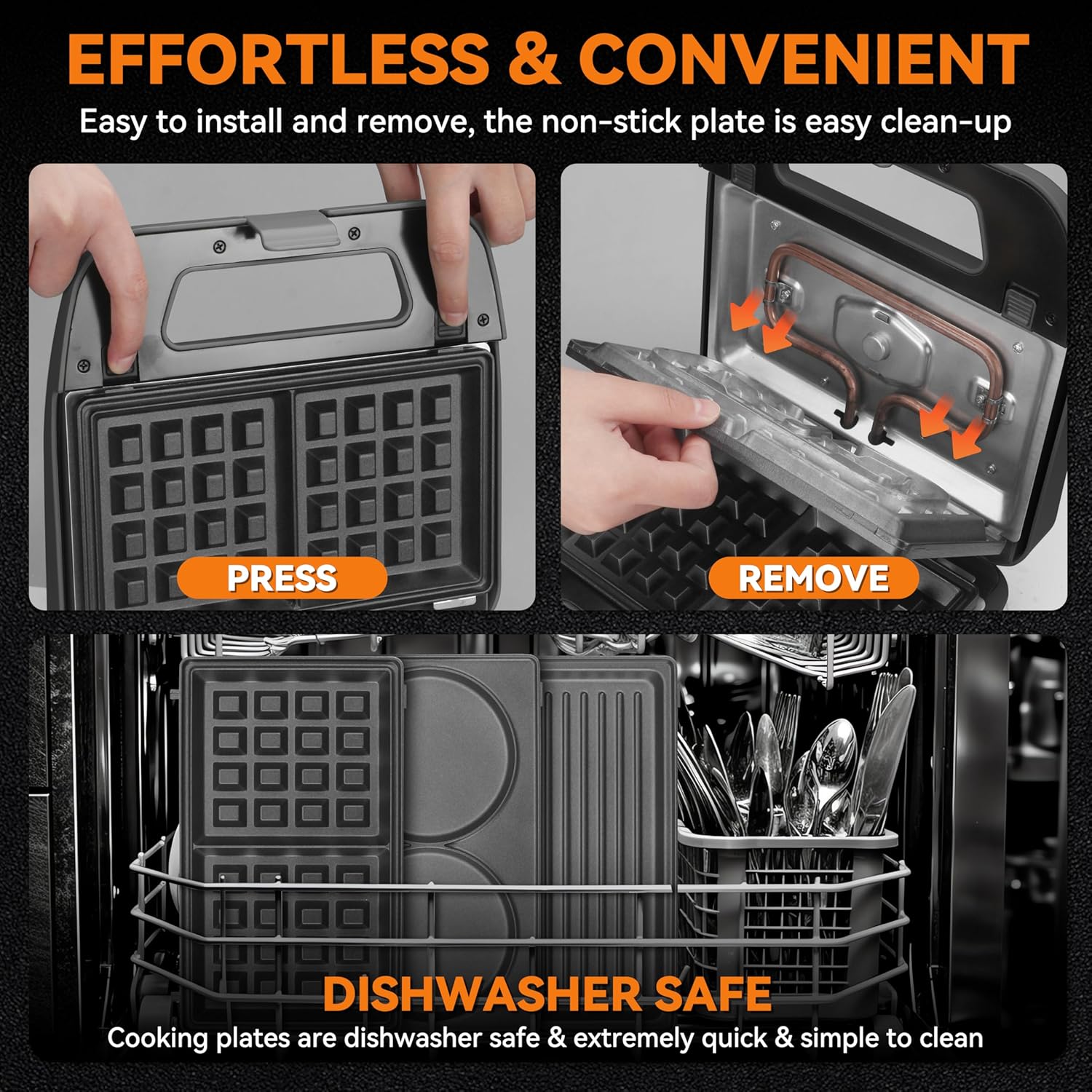 - [EFFORTLESS CLEANUP]: The non-stick surface eliminates the need for oil or butter, promoting healthier eating and simplifying cleanup. Simply wipe the surface with a soft towel and rinse, or disassemble the plates for dishwasher cleaning.