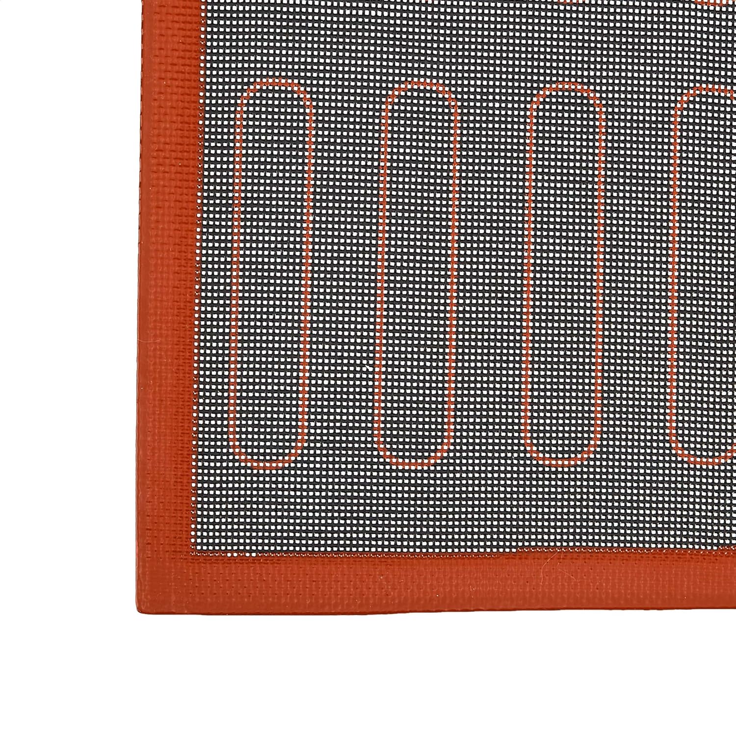 Durable design: micro-perforated silicone mat with fiberglass core. Versatile: can be used as a pastry mat or baking mat; ideal for rolling out any type of dough and for making eclairs, macarons, cookies, bread, pizza, toast, and more; can also be used when heating frozen food. Mesh holes: hollow, air-permeable mat includes fine mesh steam holes (1-by-1 mm) for even heat distribution across the entire surface, which helps ensure evenly baked food…