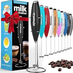 Powerlix Powerful Handheld Milk Frother With Stand Battery Operated Foam Maker Frother Wand For Coffee (A Black) (A Black)