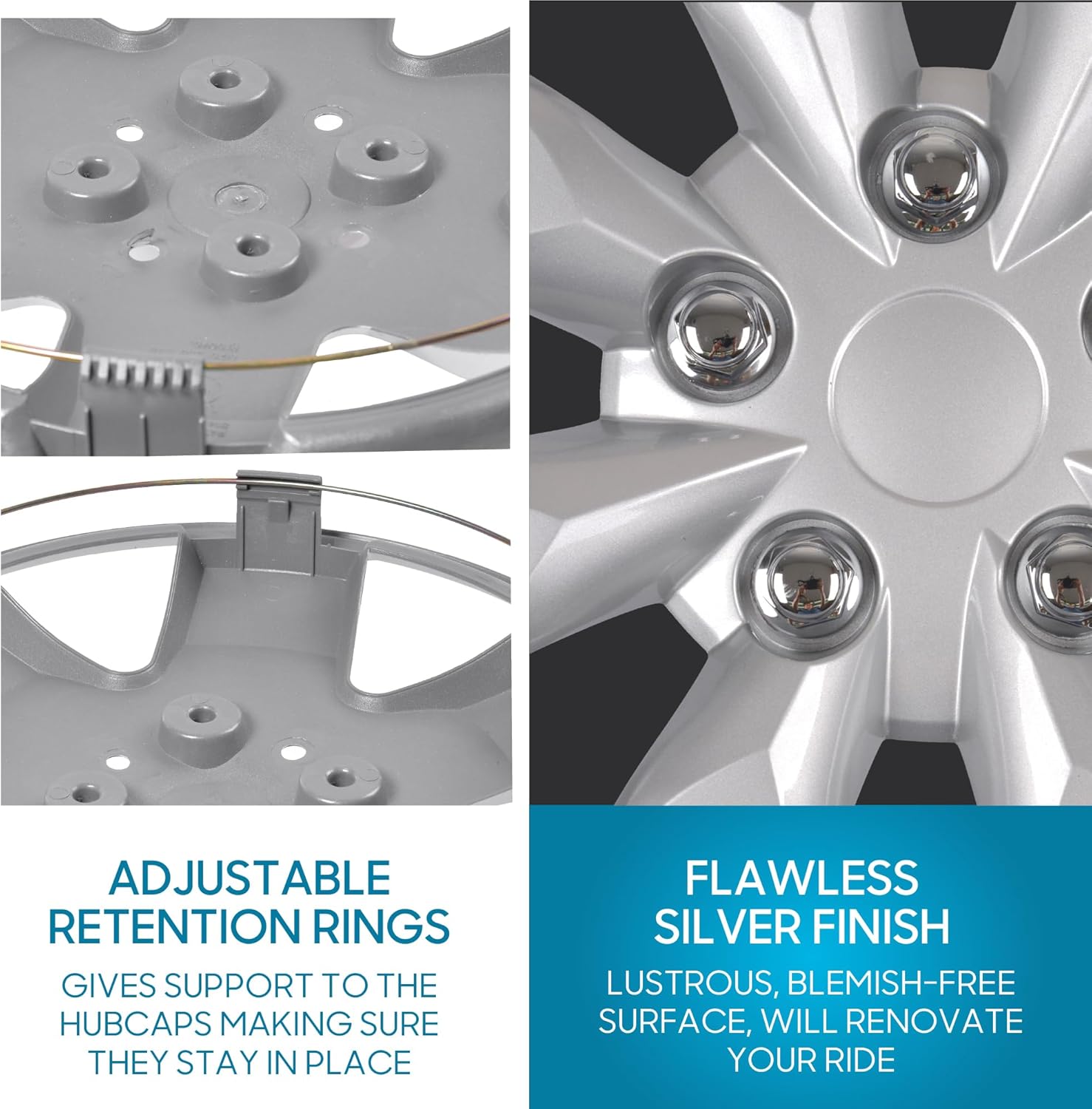 FITMENT – This hubcap fits 16 inches steel (non-alloy) rims only. Please refer to our fitment guide. Designed to replicate original equipment standards. Fits most car’s makes, models, and years.. DURABLE CONSTRUCTION – Made from premium ABS, these hubcaps withstand daily wear and tear while staying stylish. Tough and impact-resistant, they resist cracking or bending, ensuring long-lasting performance even on rough roads.. SECURE & ADJUSTABLE FIT – Achieve a reliable fit with our premium metal adjustable retention rings. Designed for long-lasting security, these rings ensure your hubcaps stay firmly in place during every drive….