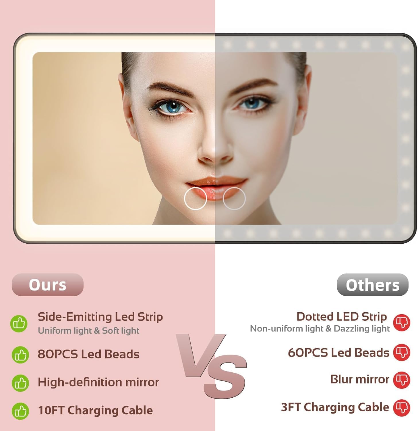 【Latest Upgrade】Upgraded uniform and glare-free LED light bars more natural and soft, bright but not dazzling, protecting your eyes.The light is even on your face,so you can see more realistically how your makeup looks. No more makeup disaster