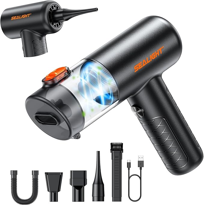 - 4-in-1 Car-to-Home Versatility : Just 0.88lb, Swiss Army Knife-level Cleaning Tool, Triple the functionality of traditional single-use vacuums, yet 50% more compact. Dust Collection, Air Blowing, Inflation & Vacuum Sealing — One tool conquers all car cleaning scenarios, freely switching between vehicle and home use. Eliminate tool clutter with ultra-portable storage
