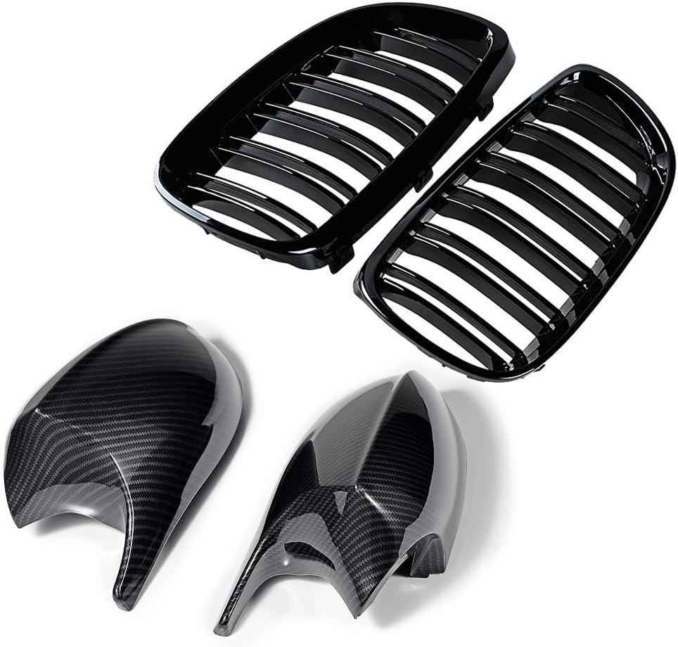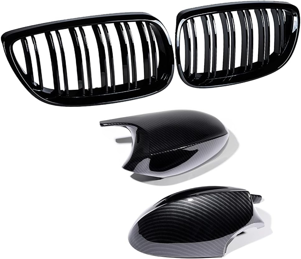 - Package Includes: 2pcs Side Mirror Cover Caps & 1 set of front bumper kidney Grille (Left & Right)