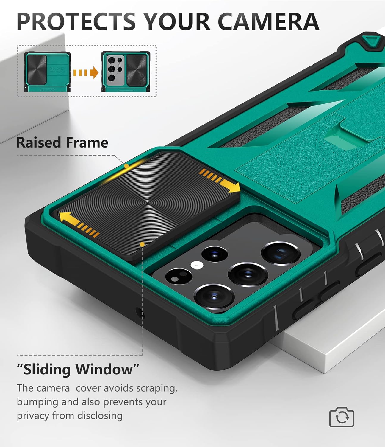 The **S22 Hybrid Protective Case for Galaxy S22 Ultra** is a premium case engineered for comprehensive protection and enhanced user experience. It features: Compatibility, Our vanguard armor phone case ONLY Compatible with Samsung Galaxy S22 Ultra/S22 Note 5G, 1 Inch or S22 Plus 6.