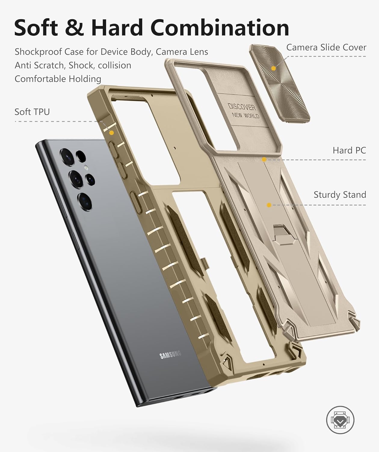 The **S23 Hybrid Protective Case for Galaxy S23 Ultra** is a premium case engineered for comprehensive protection and enhanced user experience. It features: Compatibility, Our vanguard armor phone case ONLY Compatible with Samsung Galaxy S22 Ultra/S23 Ultra 5G, Not for S22/S23 6.