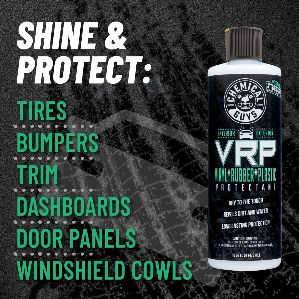 - THE ULTIMATE PROTECTION – VRP is an easy-to-use protectant that restores a deep black look, enhances shine, and protects vinyl, rubber, and plastic surfaces against harmful weather conditions and extreme heat.