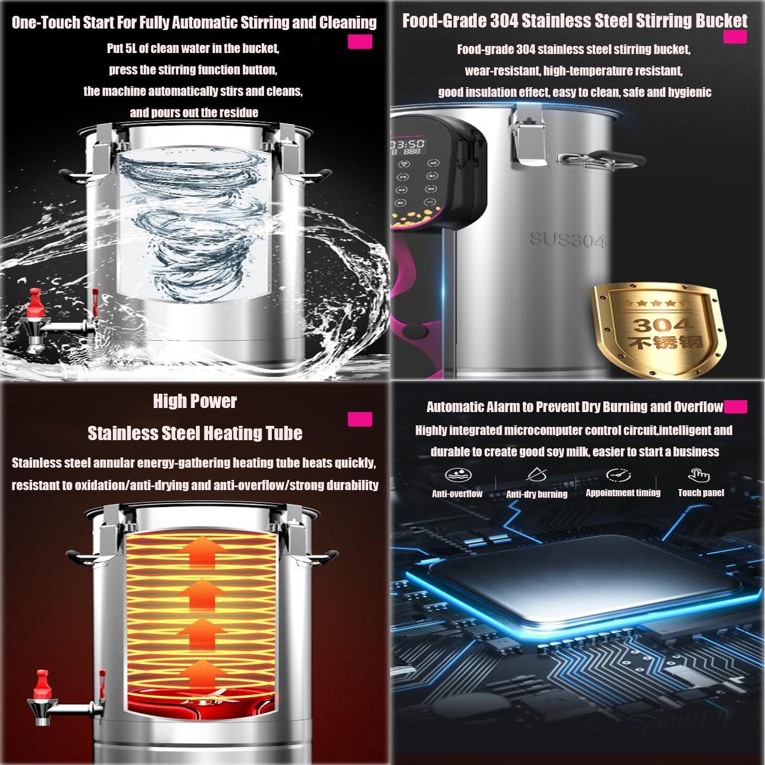 - ☀【Commercial Soymilk Machine】: This Electric Soy Milk Machine uses a food-grade 304 stainless steel mixing barrel, which is wear, high-temperature has good heat preservation effect. It can be started with one button and fully automatically stirred and cleaned, which is safe and hygienic.