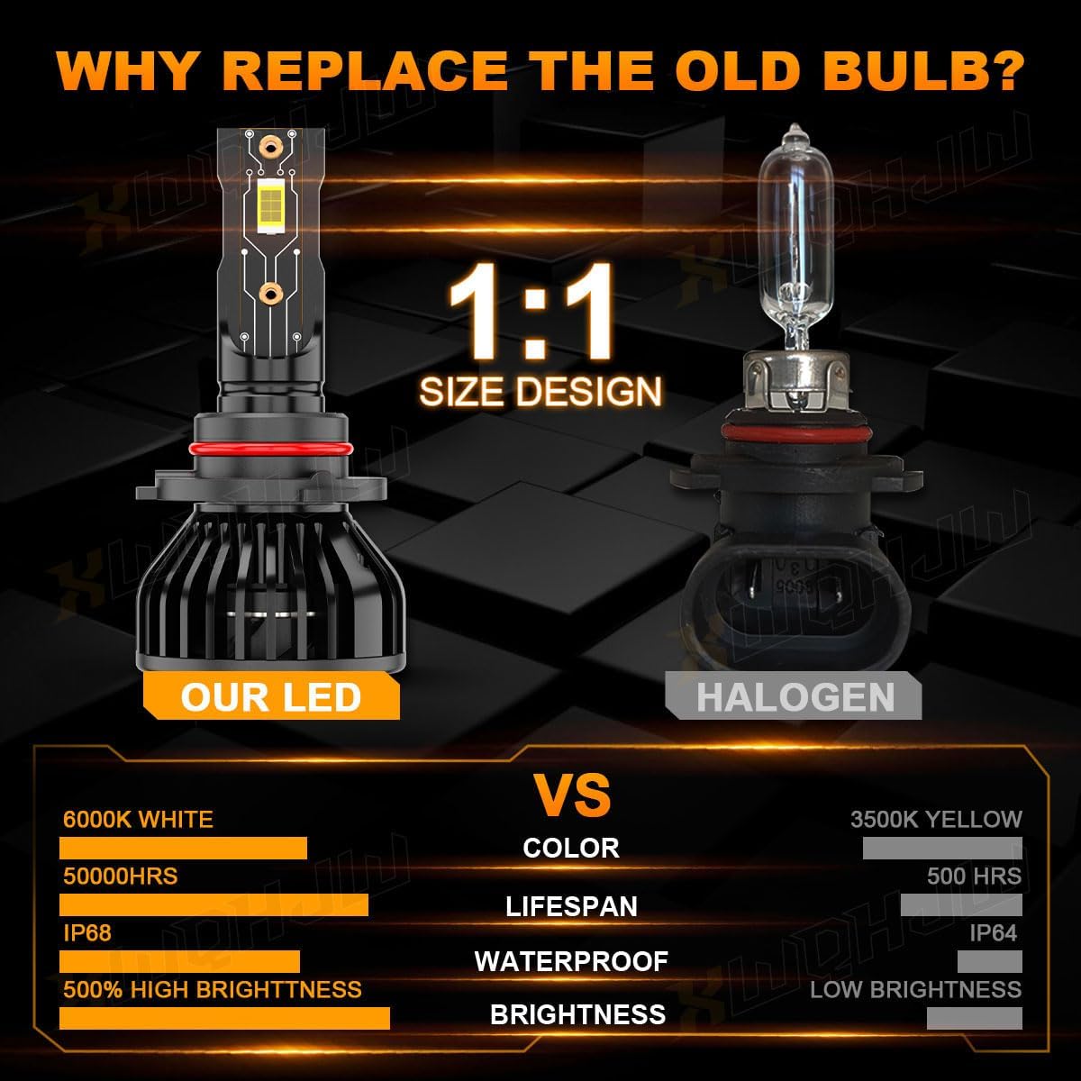 - High Brightness – 9005 9006 Light bulbs brightness up to 32000 lumens, 500% brighter than halogen lamp, provide a safe view for your driving.