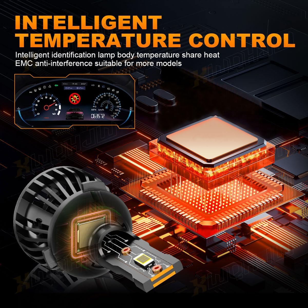 - Up To 60,000 Hours Lifespan – 9005 9006 light bulbs comes with cold pressed aluminum heat sink and 12,000rmp cooling fan, it provides a high efficient and reliable cooling system, extend lamp life.