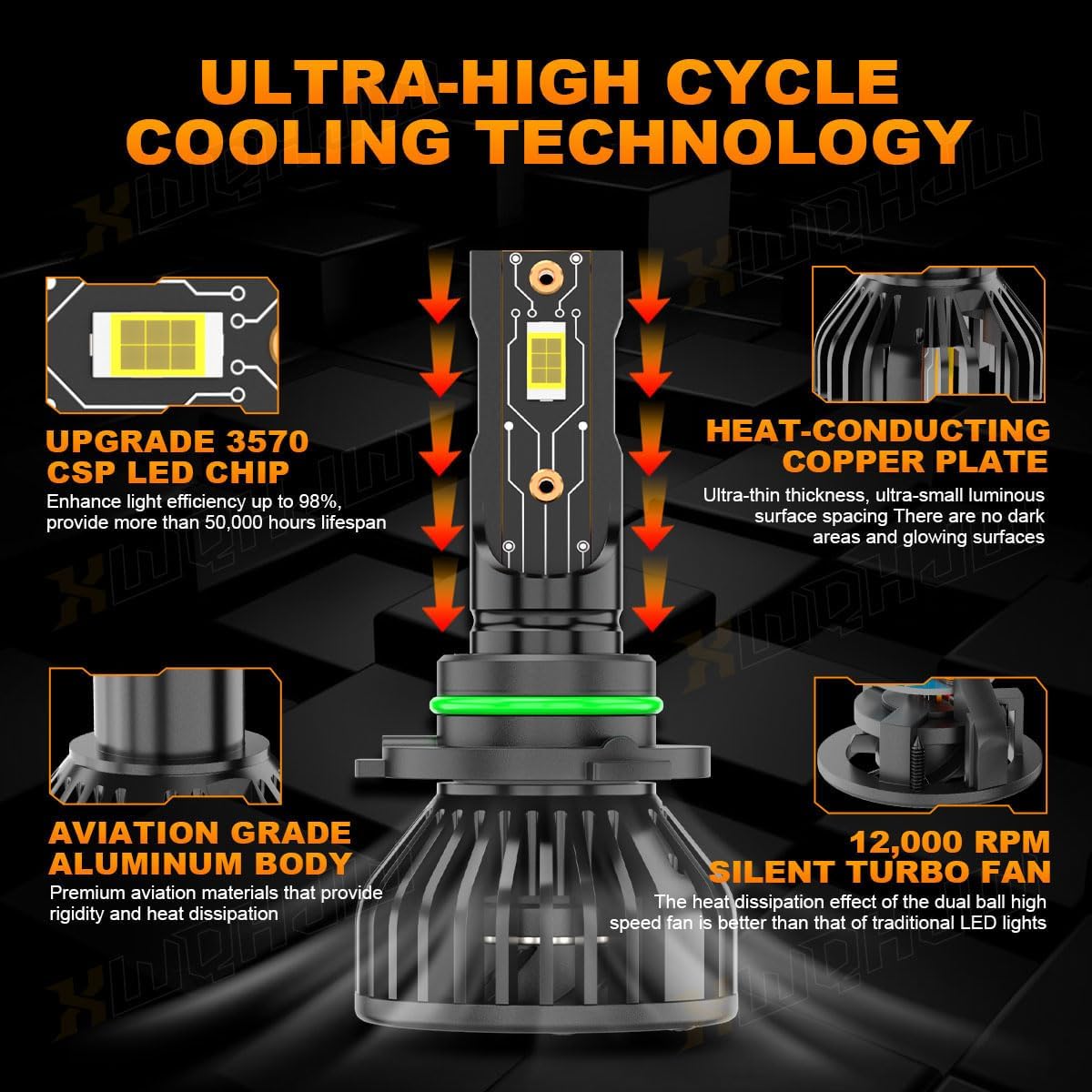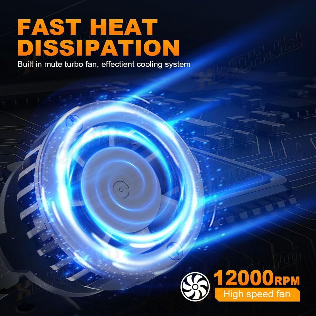 Up To 60,000 Hours Lifespan – 9005 9006 light bulbs comes with cold pressed aluminum heat sink and 12,000rmp cooling fan, it provides a high efficient and reliable cooling system, extend lamp life.
