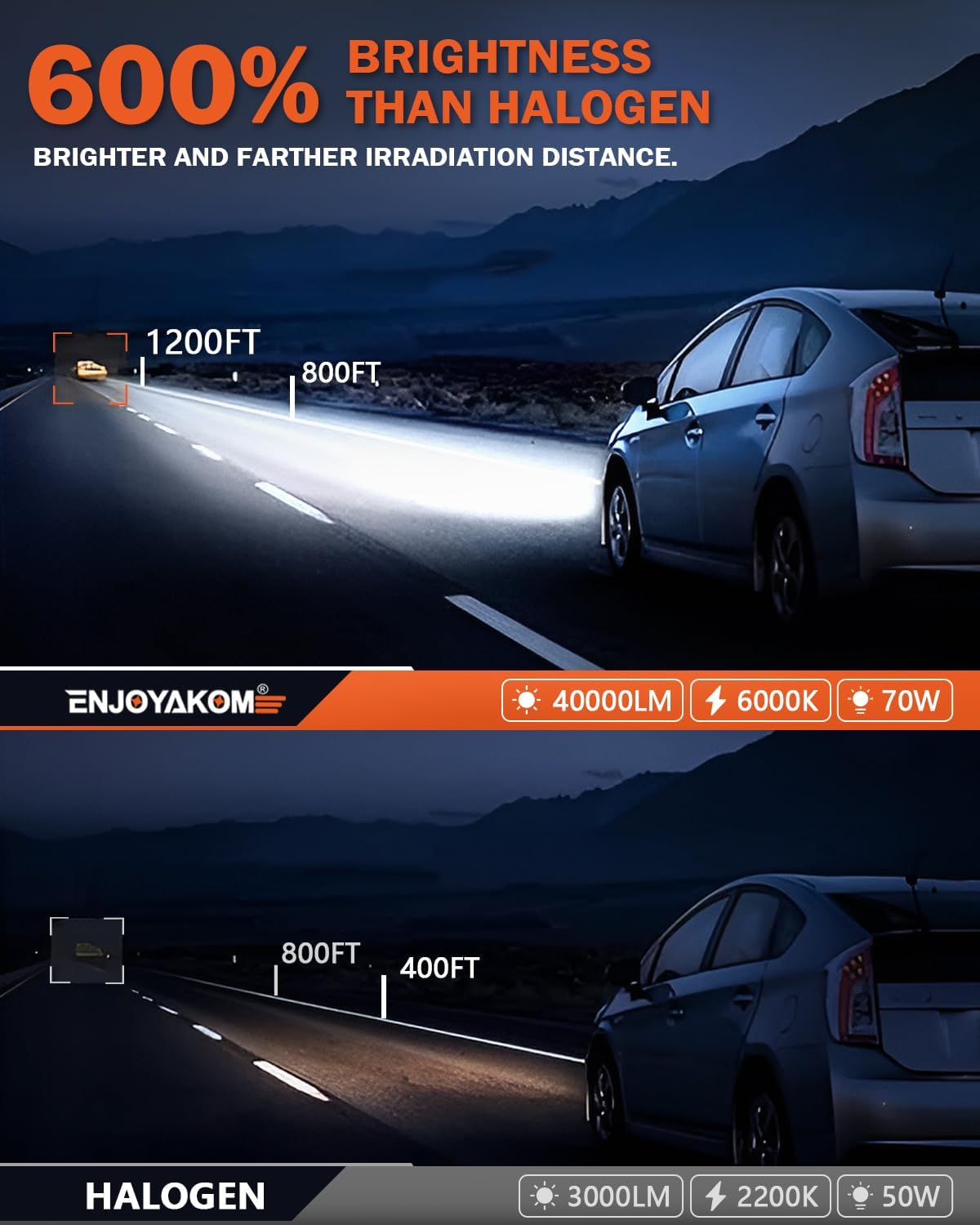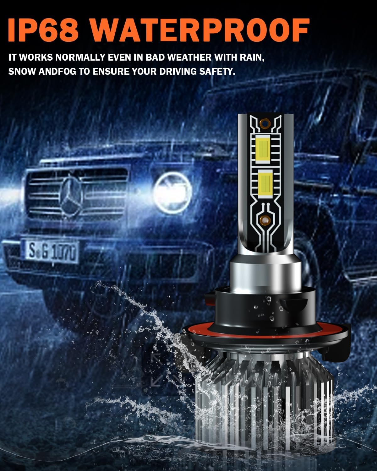 ADVANCED TECHNOLOGY: Utilizing the latest automotive chips, these 9008 light bulbs deliver a powerful 24000LM of brightness at a crisp 6500K color temperature, simulating natural daylight and providing a clear view for safer night driving