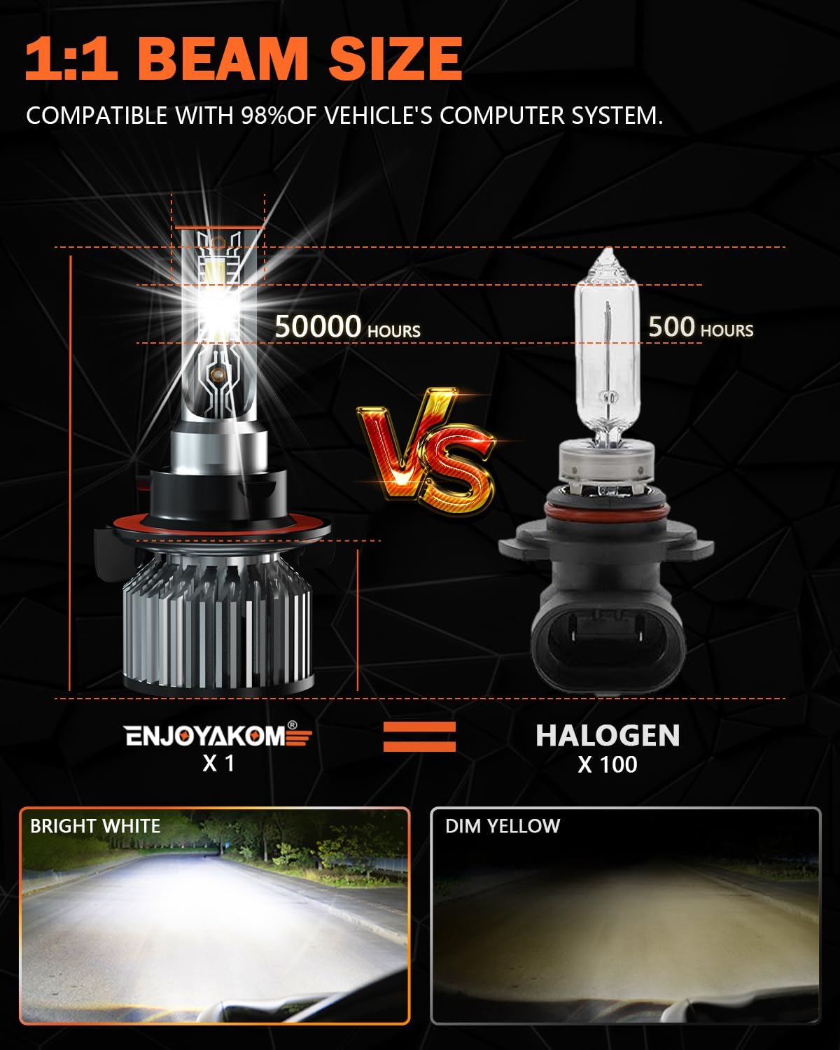 99% VEHICLE COMPATIBILITY: ENJOYAKOM bulbs are built into the upgrade driver, which can solve most system errors, perfect match for this complete set of bulbs fog light combo compatible with Ford F-150 2004 2005 2006 2007 2008 2009 2010 2011 2012 2013 2014, which can resist EMI and won’t malfunction or flicker. ENHANCED VISIBILITY: Our 9008 fog light bulbs feature advanced optics technology, providing a wider and more even light spread, ensuring optimal illumination for your vehicle’s fog lights and enhancing your visibility in various driving conditions.. 50,000HRS LONG LIFESPAN: Crafted from premium aviation aluminum and equipped with a high-speed cooling fan, these ford f-150 accessories bulbs are built to withstand the test of time. The efficient cooling system prevents overheating, ensuring a long-lasting performance…