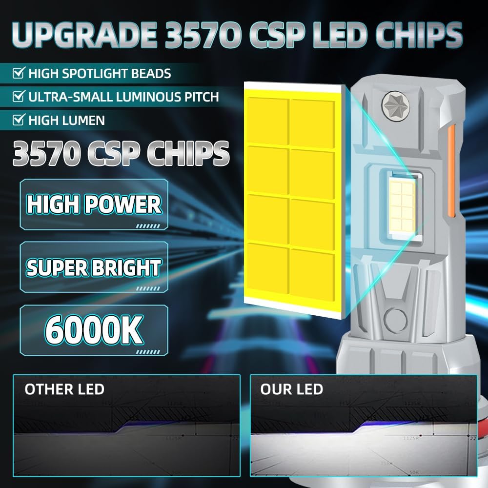- 【8X Brighter Than Halogen | 6000K Cool White 20,000LM】 “Experience highway-ready brightness with 20000LM output (8X brighter than stock halogen), delivering crisp 6000K cool white light that mimics daylight for safer night driving.”