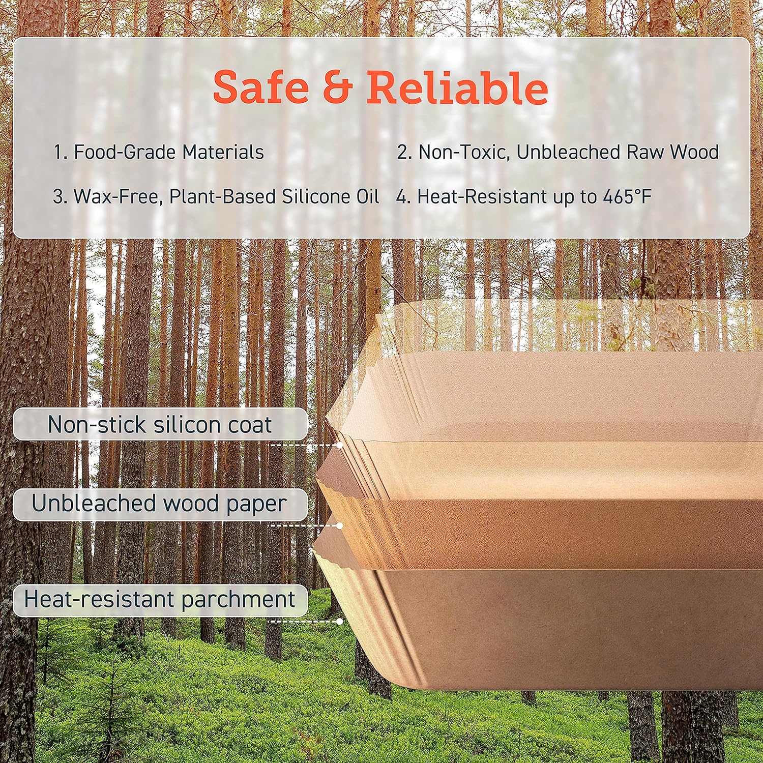 - HEALTHY & SAFE: The parchment paper is wax-free, bleach-free, non-toxic, and coated with food-grade silicone. It can be safely heated up to 465°F, far above the maximum temperature of an air fryer.