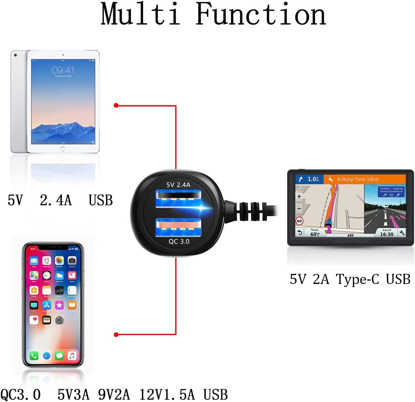 - 【High quality】 Good design, advanced technology, premium materials–the soft blue LED light indicator will help you to locate the car adapter easily, and it also will provide convenience for you to pull and plug USB power cables in dim light