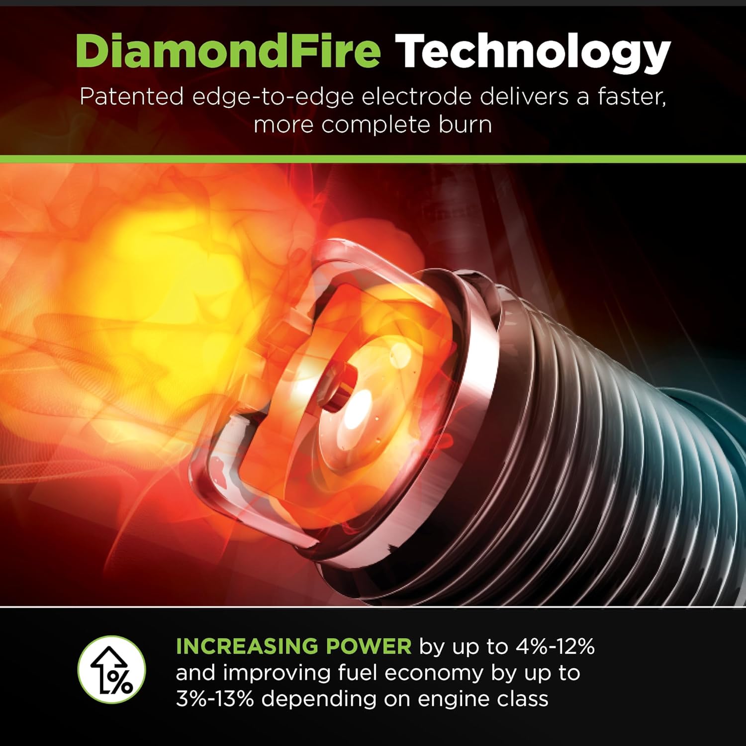 - DIAMONDFIRE TECHNOLOGY: Patented DiamondFIRE edge-to-edge electrode delivers a faster, more complete burn, increasing power by up to 4%-12% and improving fuel economy by up to 3%-13% depending on engine class