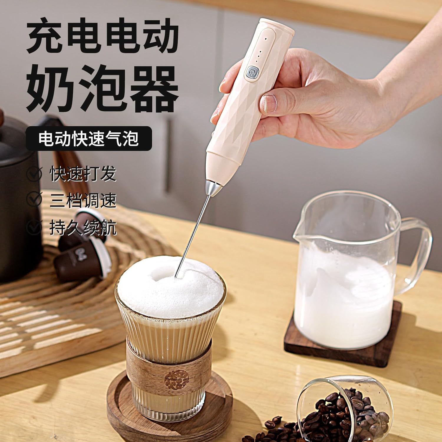 It adopts a wireless and compact design, which can be easily operated with one hand, making operations such as frothing milk simple and effortless. It gets rid of cable constraints and is more flexible in use scenarios.Equipped with a high-power motor, it can whip ingredients stably and at high speed, stir efficiently, save time and effort, and easily make smooth milk foam or delicate egg cream.