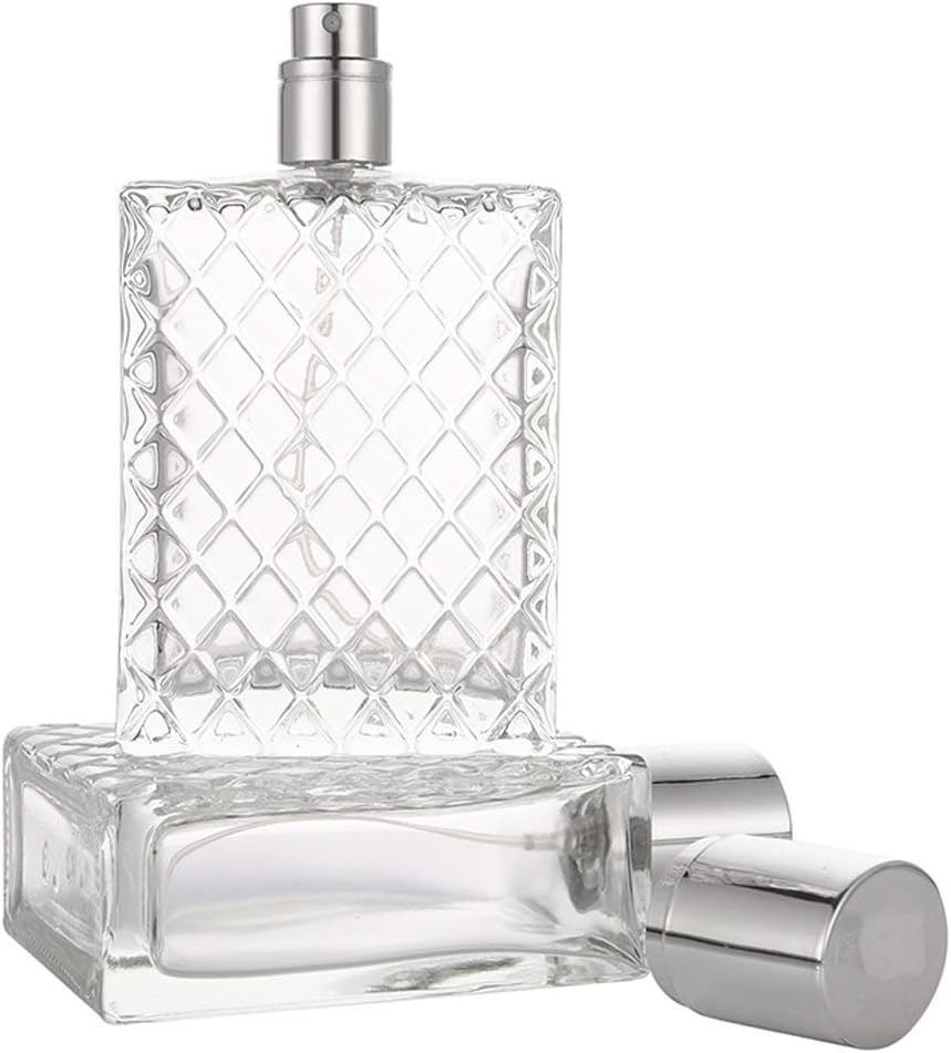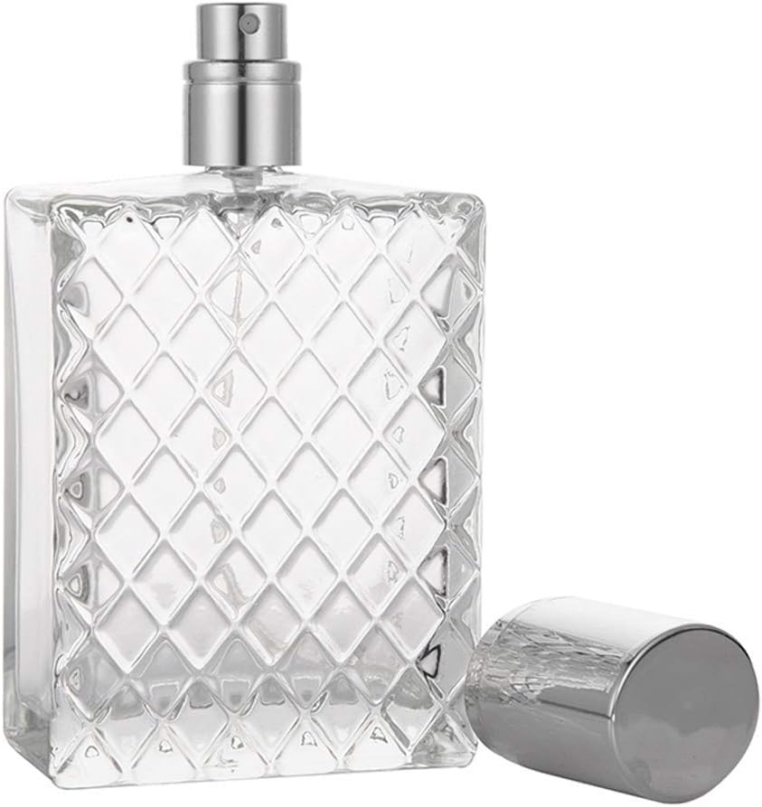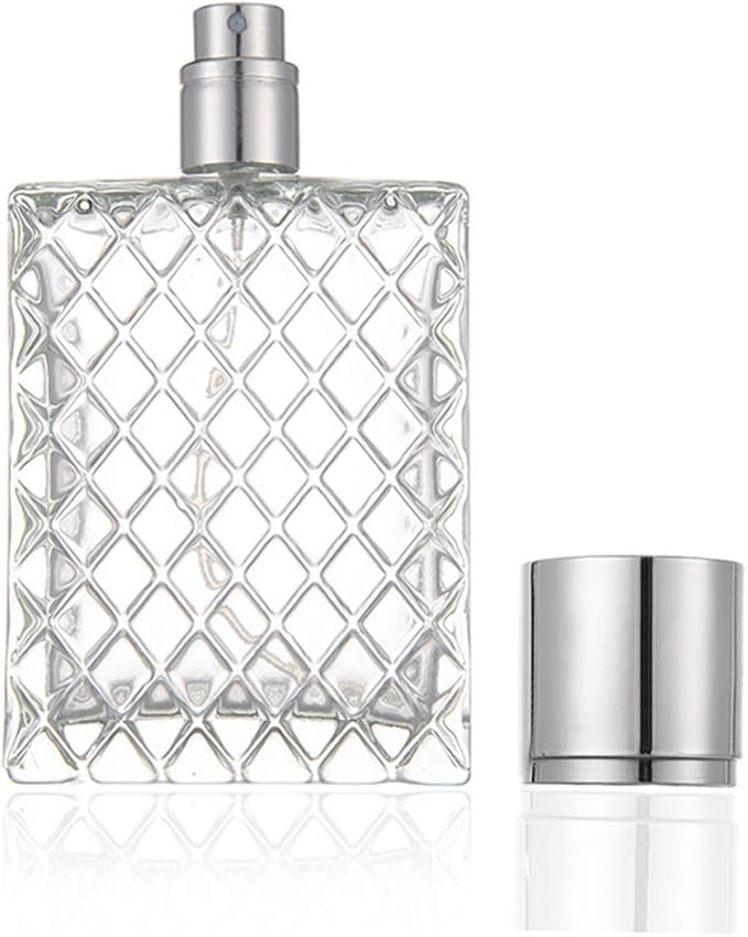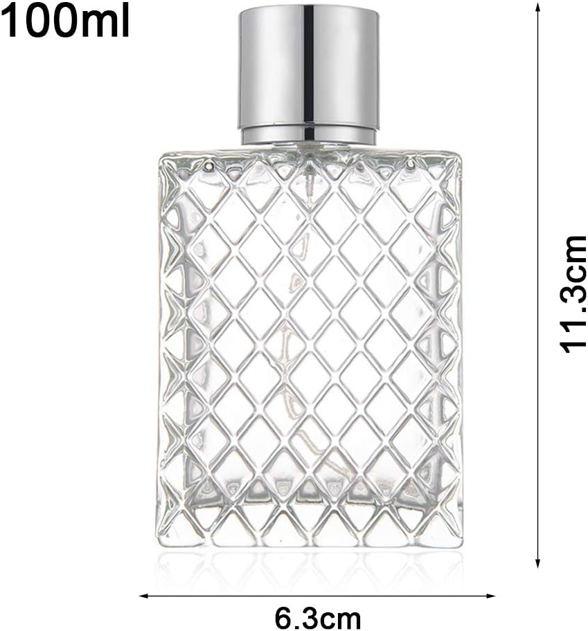 100ml (3.4 oz ) Thick, heavy, grid square glass bottle .. The unique design of this Refillable Perfume Bottle can make all kinds of liquid such as perfume, refreshing, breathing spray, and body lotion etc.. Easy to refill without funnels/spills. Rapid refill with no danger of spilling exposure to air….