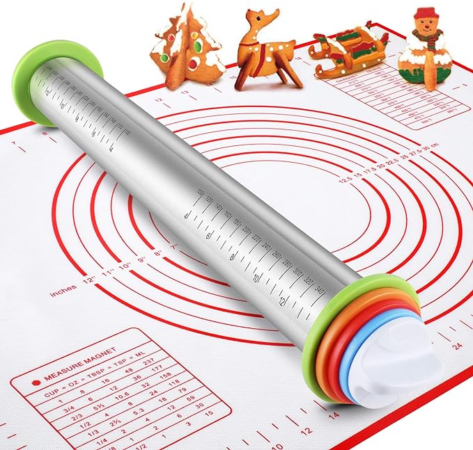Stainless Steel Rolling Pin And Silicone Mat Set