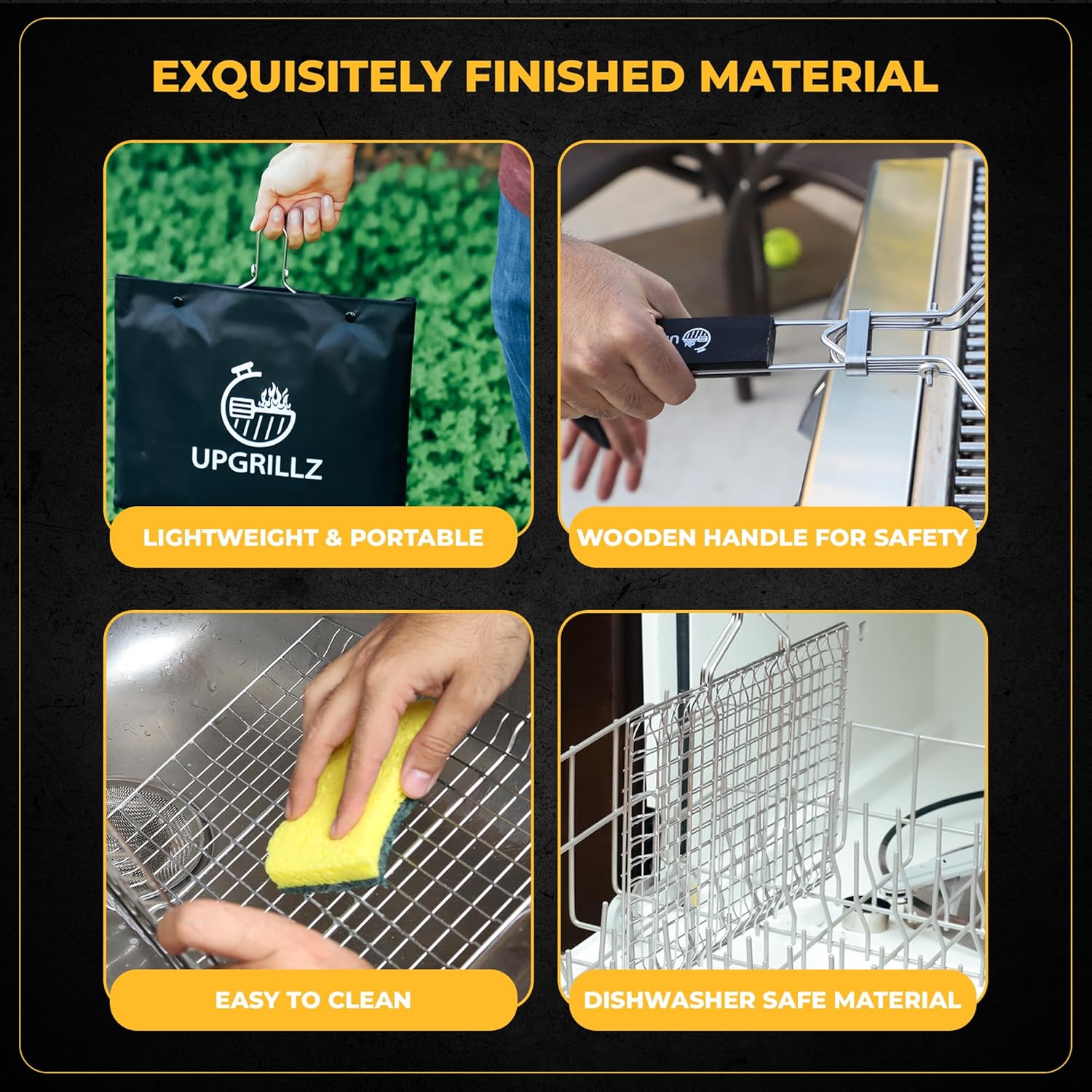 【 Perfect Package 】 Upgrillz is concerned to give you an ultimate grilling experience with our fish rack for grilling therefore In addition to the vegetable grill basket for outdoor grill, we have included 50 Skewers and a silicone brush in the package to save your time and money buying it separately.