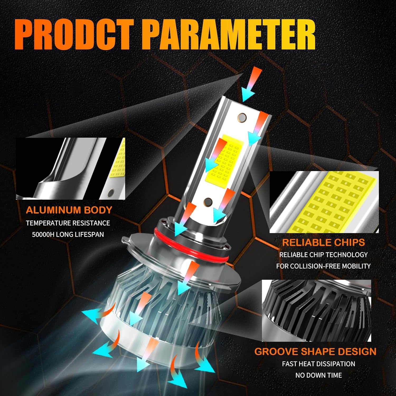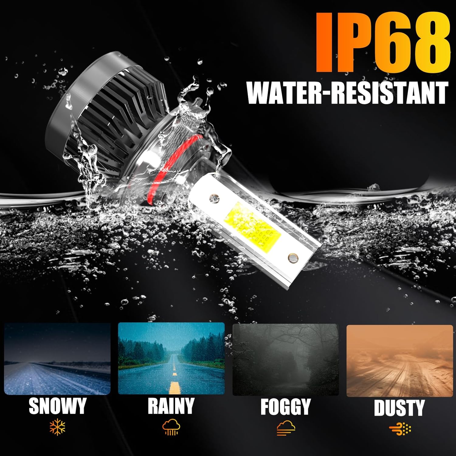 [Exceptional Illumination Performance]:Compared to original high beam low beam fog light bulbs, this product offers a broader field of vision coverage, significantly reducing blind spots. It is 500% brighter than original vehicle front light bulbs, ensuring clear visibility even in foggy and low – light conditions, thus safeguarding driving safety.. [Long Lifespan]:The product is equipped with a vented aluminum housing that rapidly dissipates internal bulbs heat to effectively prevent overheating-induced issues like short circuits, while delivering an extended service life of over 50,000 hours for reduced replacement needs and long-term reliable performance.. [Easy Installation]:Through rigorous design and development, this product perfectly replicates the dimensions of original vehicle front light bulbs, allowing for seamless integration without vehicle modification. It only takes five minutes to complete the upgrade, making it easy for even novice drivers to install without any hassle….