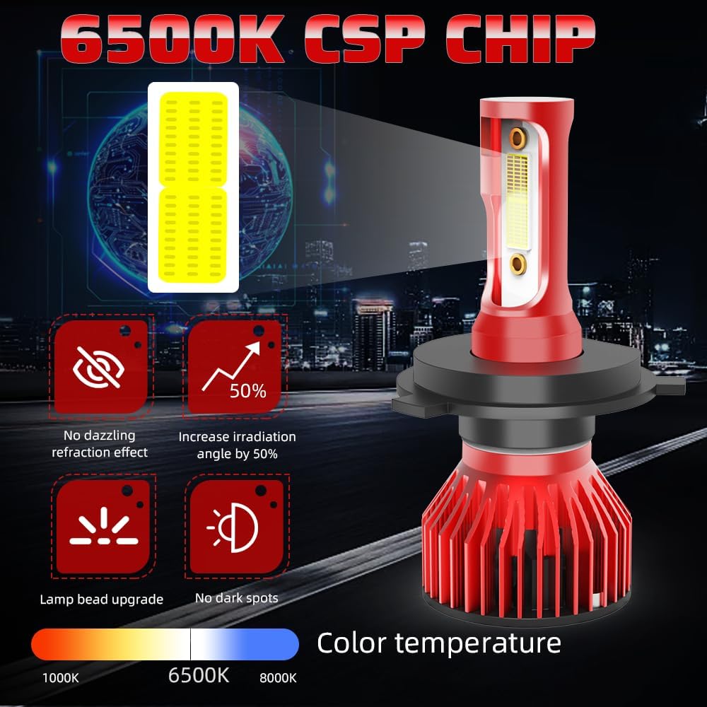 【600% Brighter than Halogens】Fit for Ford F150 F250 F350 F450 1997-2003 led lights adopts latest chips with 6000K cool white light, 600% brighter than your original oem halogens, the bottom with 12,000 rpm silent fan, which can last up to 50,000 hours or more. You need to be replaced less frequently, reducing the maintenance the vehicle.. 【Plug and Play, Easy Installation:】They are as small as halogen bulbs, making installation a breeze, as they are designed to be almost 1:1 in size with halogen bulbs. Simply plug them in and you’re done. Upgrade to these LED high/low beam bulbs without any hassle, and enjoy their compact size and easy installation in your car.. 【Over 5,0000 Hours Lifespan】- Our bulbs are made with aviation aluminum that is hollow carved and has a unique heat sink design and cool fan technology for better cooling. It ensures a longer lifespan of up to 50000 hours to give you peace of mind while driving….