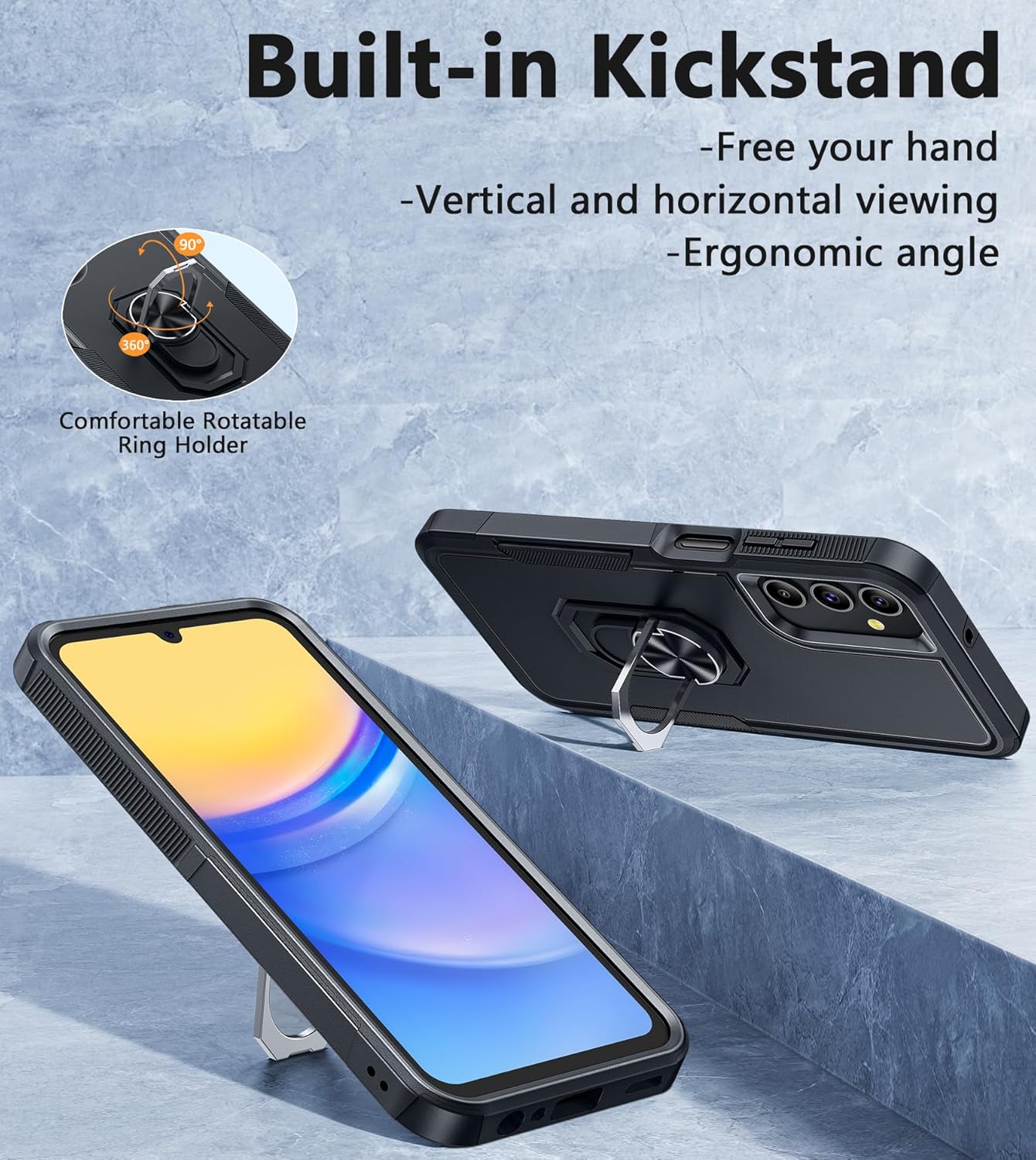 The **FNTCASE Hybrid Protective Case for Galaxy A15-5G** is a premium case engineered for comprehensive protection and enhanced user experience. It features: Stylish Double Guard Cellphone Covers, hard PC rear outer shell for strong impact resistant, a metal plate on hardcase back support car.