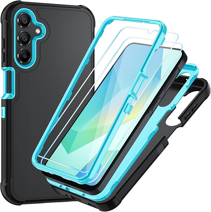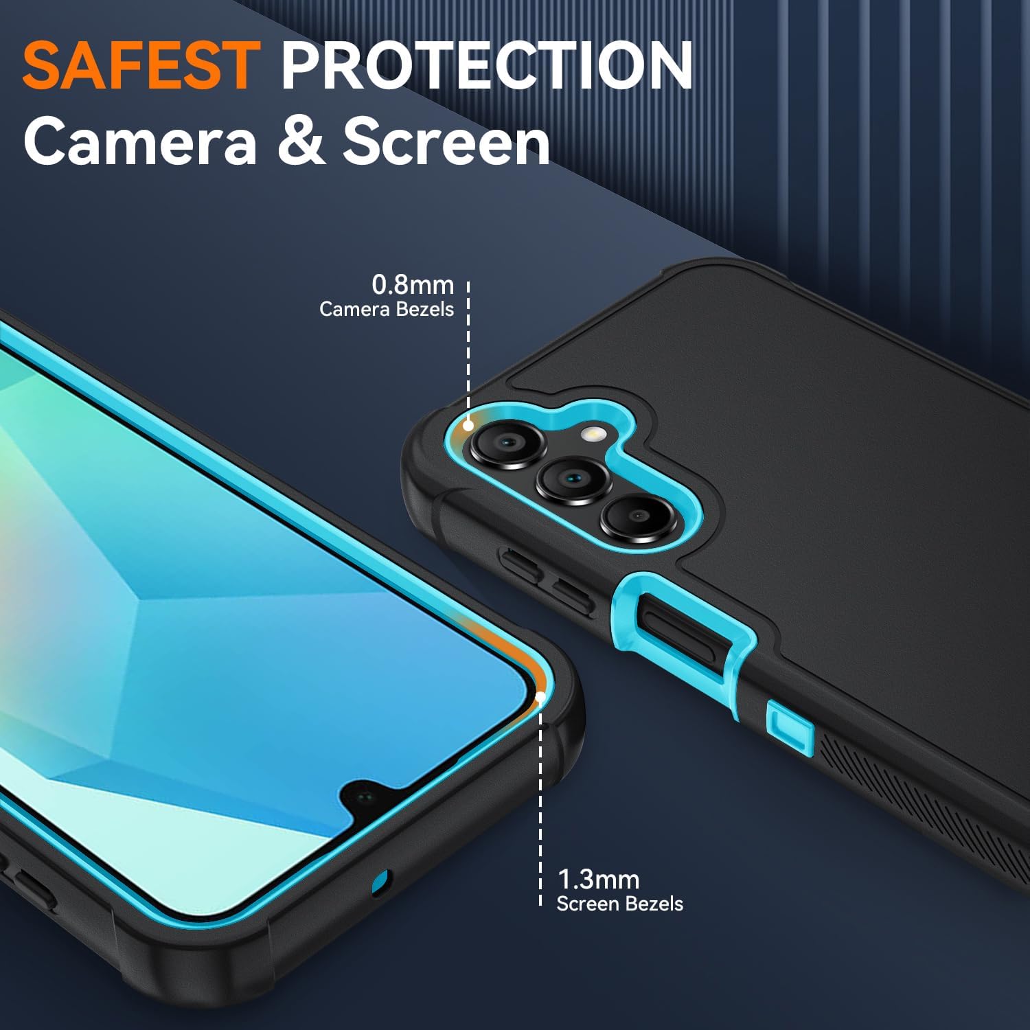 The **A16 Hybrid Protective Case for Galaxy A16 5G – Black/Glacier Blue** is a premium case engineered for comprehensive protection and enhanced user experience. It features: Compatible With, 7 inch ,Package inludes 2 Pack Soft PET HD Screen Protector 3, layer Protection &.