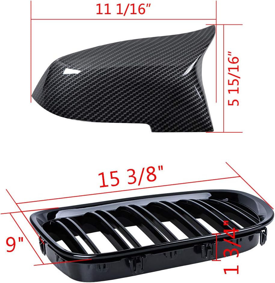 Glossy Black Dual Slats Front Bumper Kidney Grilles+ Carbon Fiber Side Mirror Cover Cap Compatible With 2013 2014 2015 7-Series F01 F02 740Li 740I 750Li 750I 760Li Xdrive Sedan 4-Door