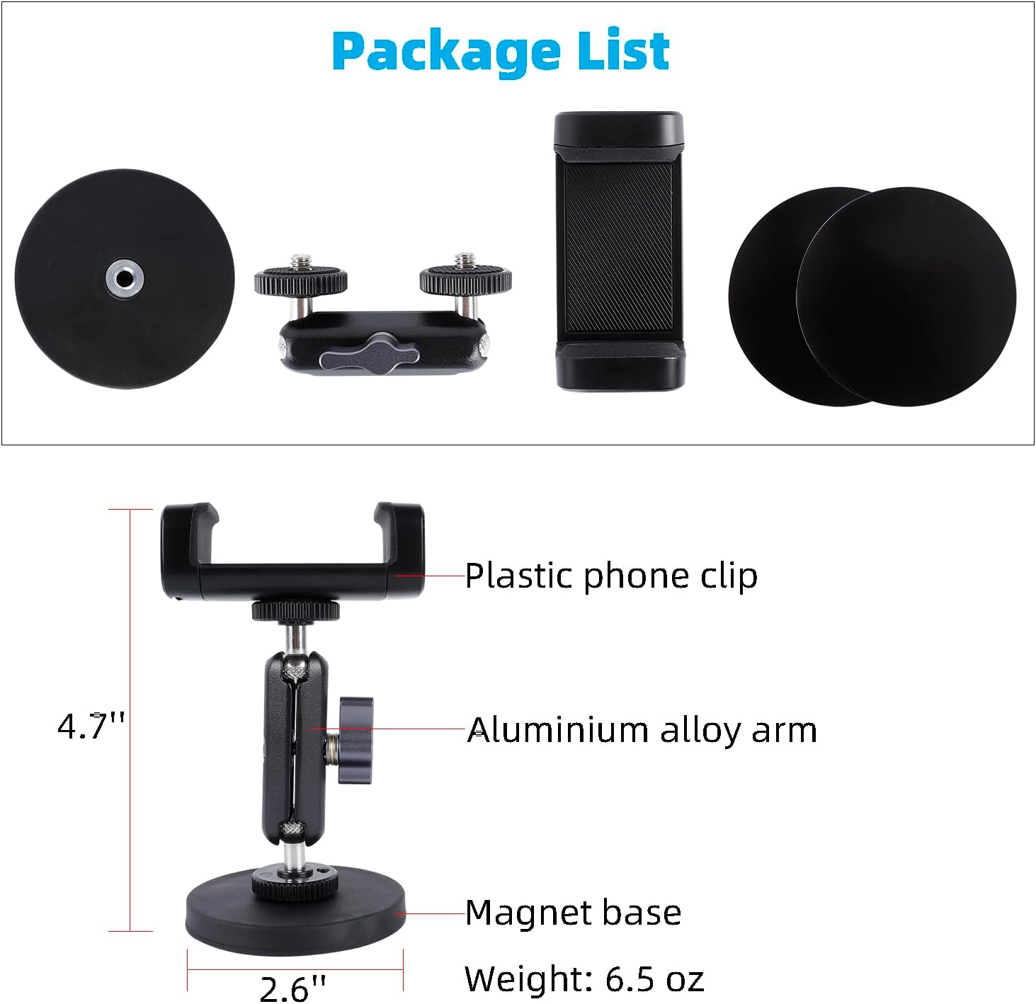 Attach to Any Metal Surface: Our Gym Magnetic Phone Holder Mount features 6 strong N52 magnet s that securely attaches to any ferrous metal surface, allowing you to enjoy hands-free access to your phone while working out, cooking, or watching videos.. Versatile Usage: The package includes a metal plate that can be conveniently placed on walls, countertops, bathroom tiles, or glass surfaces for added flexibility in where you can mount your phone.. Premium Quality Material: Constructed with durable alloy material, the base and magic arm of this phone holder are built to last. The additional layer of silicone on the base prevents scratches on your devices….