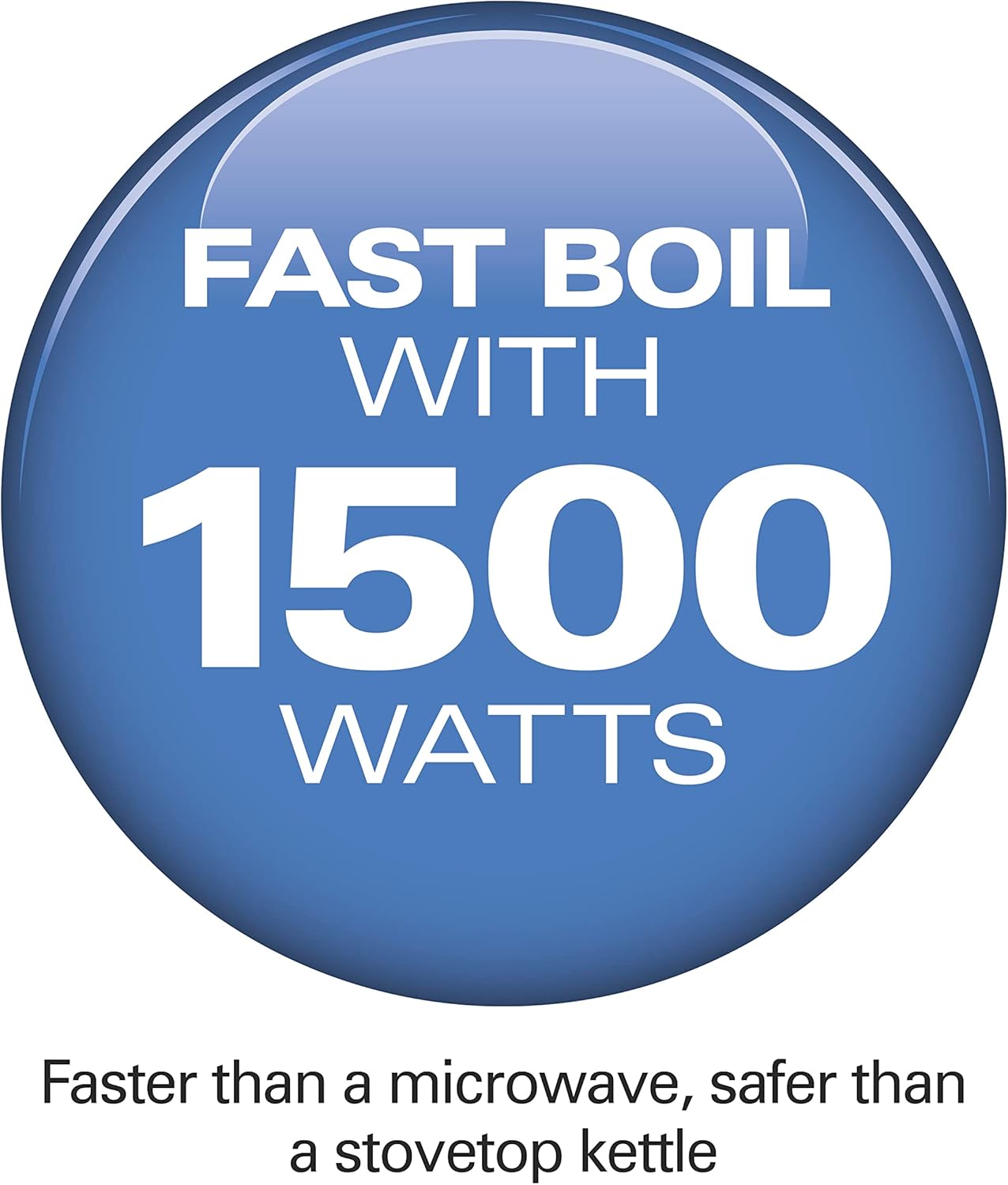 - Fast Boil with 1500 Watts. This electric kettle boils up to 1 liter of water faster than a microwave and safer than a stovetop kettle. Make a quick, hot cup of tea or French press coffee anytime without the long wait — perfect for hectic mornings