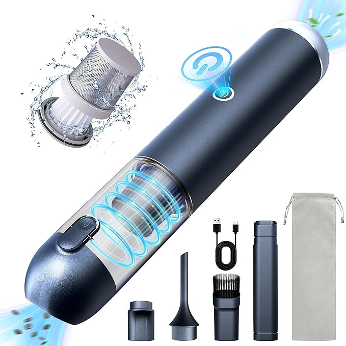 - 【Easy to Clean and Complete Accessories】This handheld vacuum features a washable, reusable HEPA filter. Market-available HEPA filters are compatible with our portable car vacuum and include four specialized connectors for enhanced cleaning efficiency