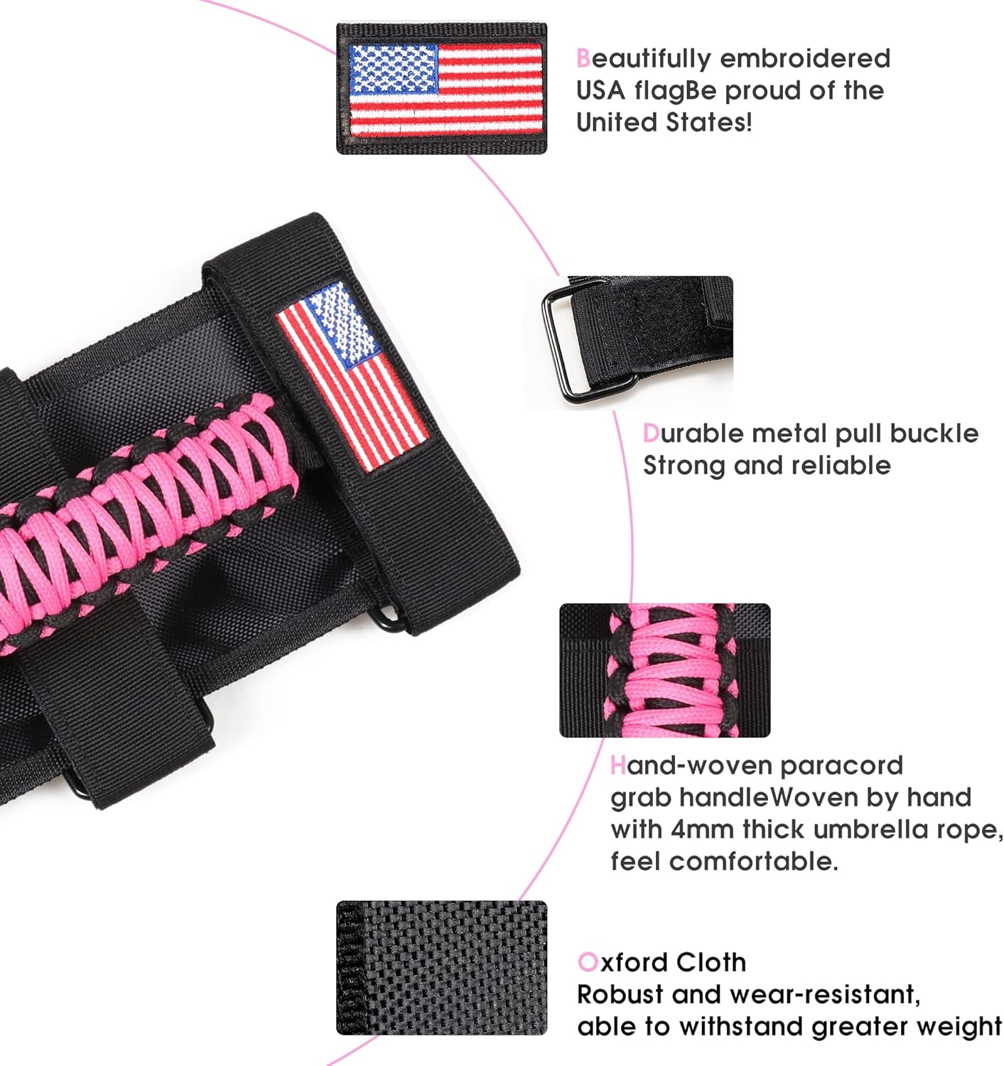 - 【WHAT YOU’LL GET】 Each set includes 2 pack pink grab handles for Jeep wrangler, If you have any questions, please don’t hesitate to let me know and we will provide satisfactory service