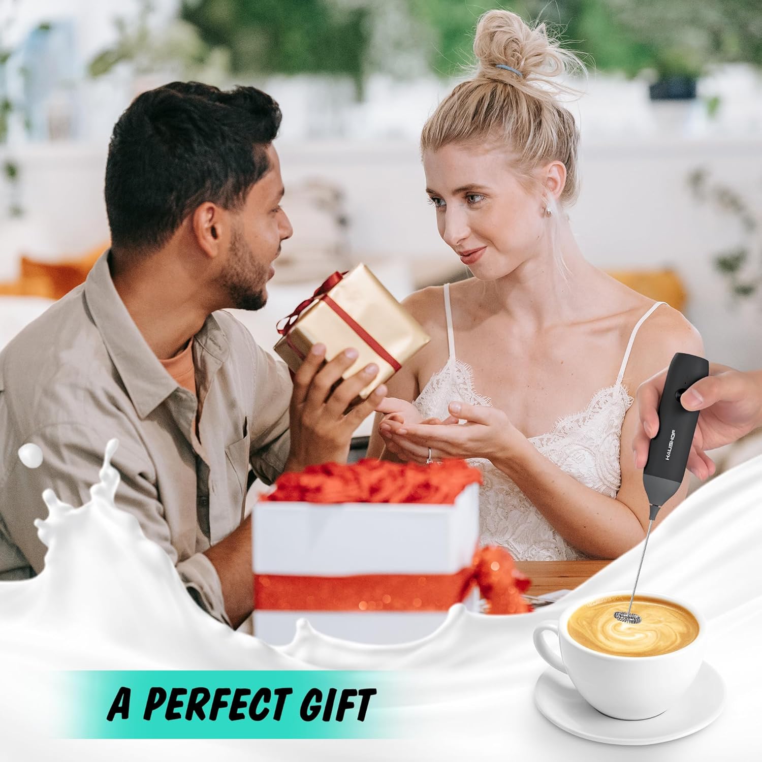 Ideal for Coffee Enthusiasts: Skip the coffee shop run and enjoy lattes, cappuccinos, matcha, hot chocolate, powdered drinks, or iced coffee at home with this milk frother, our handheld frother blends a lightweight build with an ergonomically designed soft-touch. This electric frother embodies unmatched convenience, serving as an ideal gift for friends and family. Let them relish the ease of preparing delightful homemade chocolate or cappuccino beverages