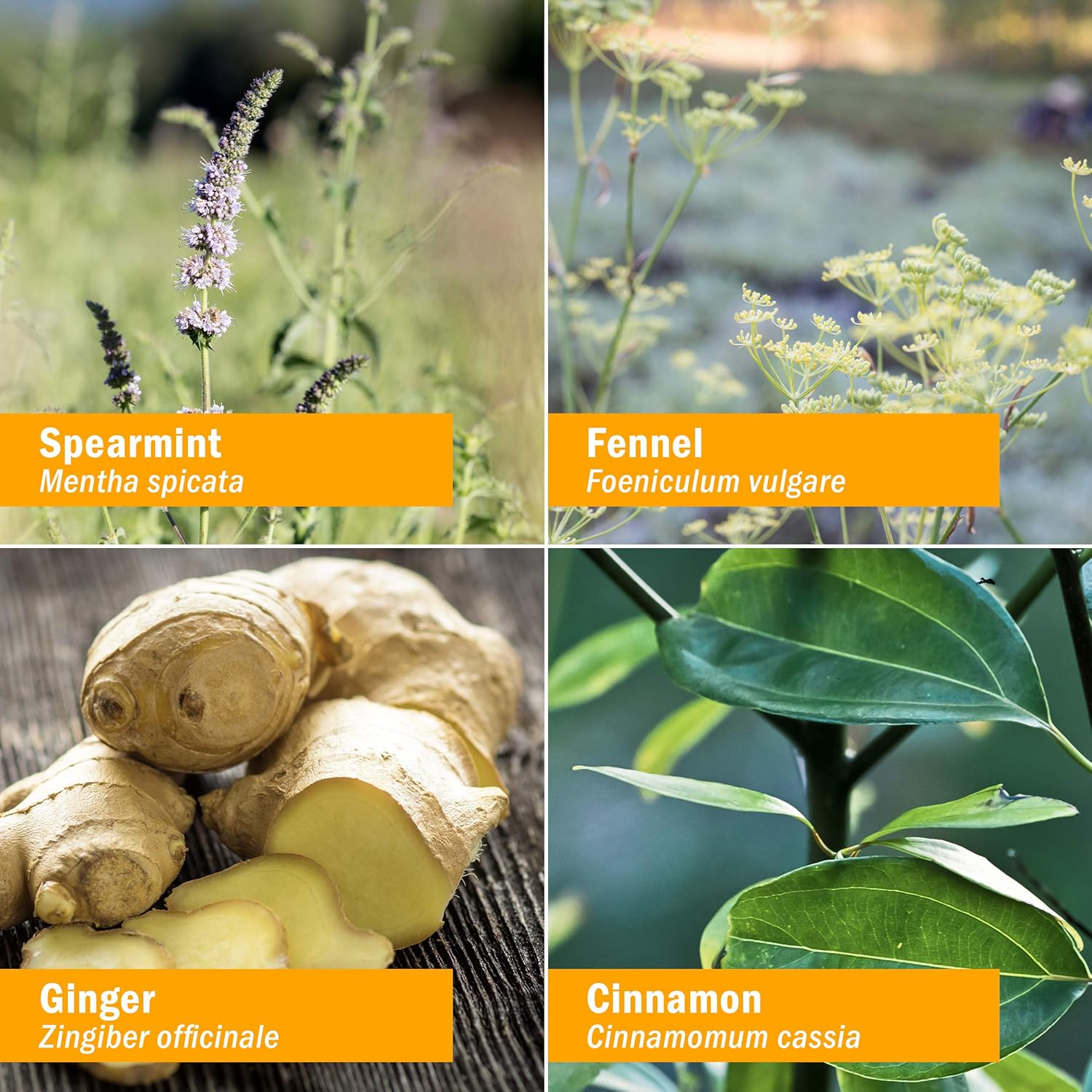 Our Breath Refresher: Spearmint is a Certified Organic blend of Spearmint herb (Mentha spicata), Fennel seed (Foeniculum vulgare), Ginger rhizome (Zingiber officinale), Cinnamon bark (Cinnamomum cassia), Clove flower bud (Syzygium aromaticum) and Spearmint essential oil (Mentha spicata). The extract is prepared from Certified Organic herbs. The essential oil is steam-distilled (solvents are never used). Each Breath Refresher is handcrafted in small batches. The flavor profile of Spearmint has a crisp, clean mouthfeel that is ideal for those who enjoy mints but want to take a walk on the milder side. Caution: Do not take during pregnancy. Flammable: Keep away from fire or flame. In case of eye contact, flush with cool water for 5 minutes. If irritation persists, see a doctor.
