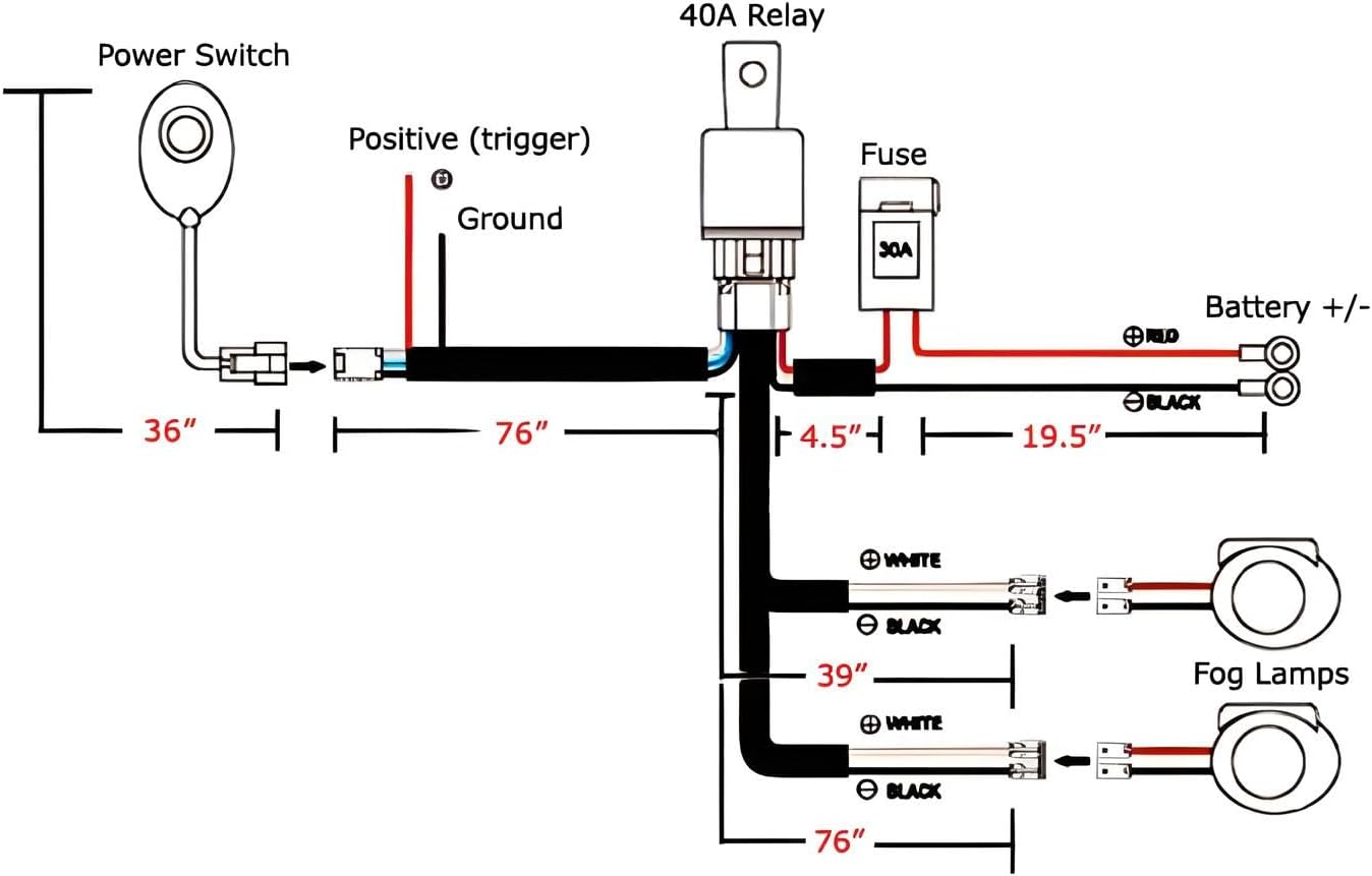 - Perfect for power management, this relay harness is ideal for applications like front fog/driving lights and off-road lightbars, pod lamps drawing power directly from the battery to prevent excessive load on the vehicle’s existing wiring system and ensuring safe, easy on/off operation