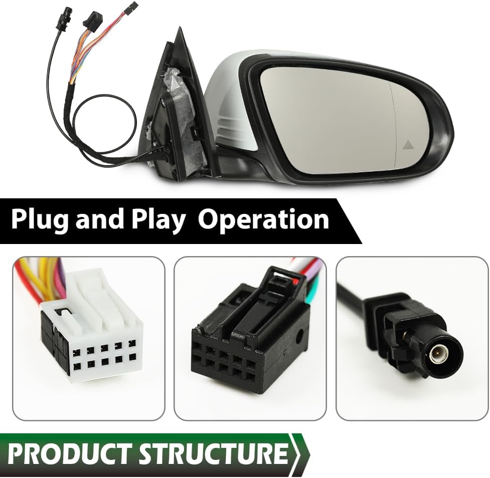 Compatibility: Compatible with Benz X253 Class GLC300 GLC350 2016-2021. Feature: Power Folding, Power Glass, Heated, With Signal Light and Puddle Light, With Blind Spot Feature, With Bluetooth. Enhance Visibility: Heated function helps to get rid of rain or fog on the mirror surface when driving in bad weather to provide better visibility during night time, heavy rain, dense fog or snow…