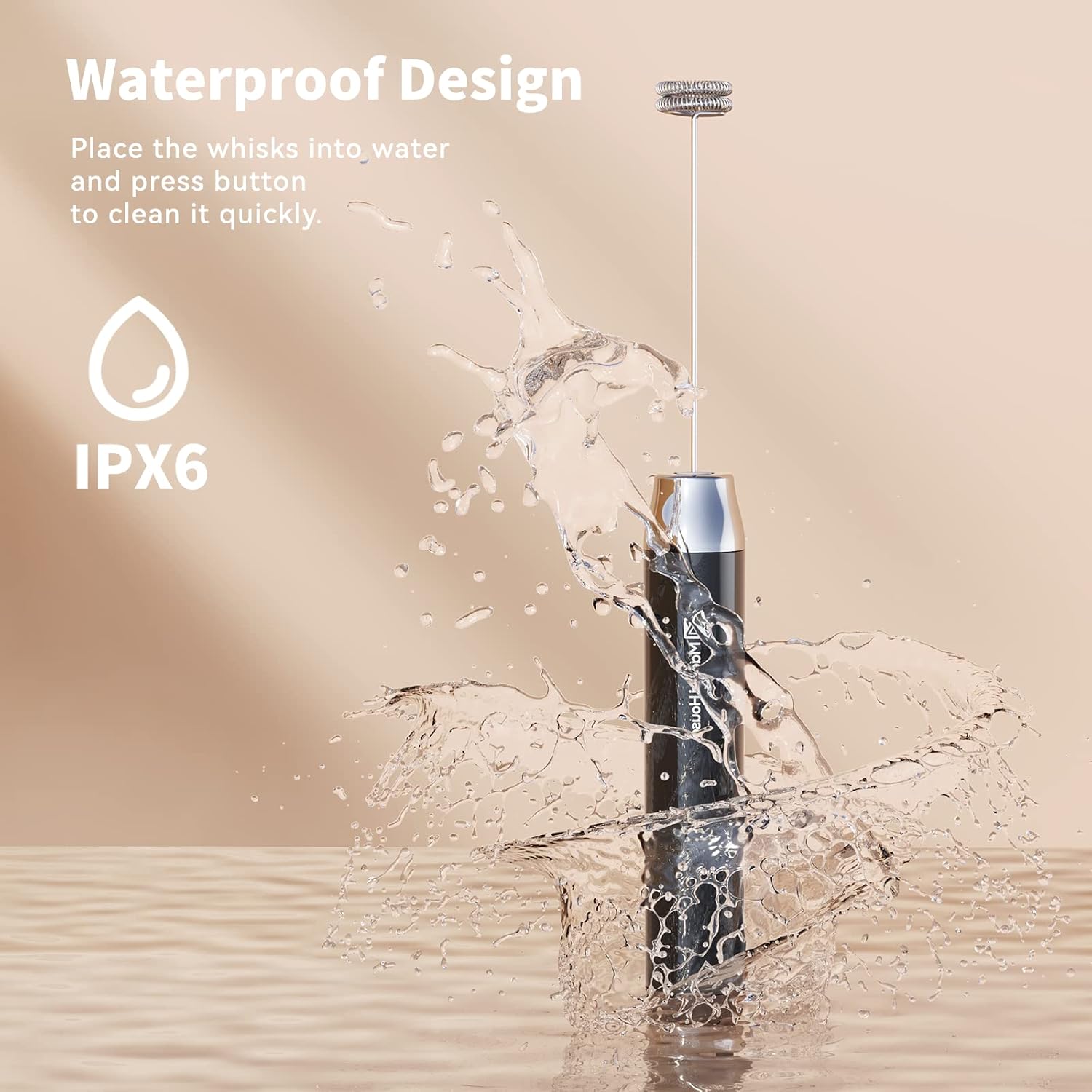 One-button Operated Design: One press to start the whisking and another press to stop frothing. Just place the LunaFro AS handheld milk frother’s whisk into the container with milk or other liquid food, then press the button to make milk foam, and press the button again to stop working. It’s effortless to clean. Only put the mixing head into water or soapy water, and then press the button to let eddy water current clean it completely.