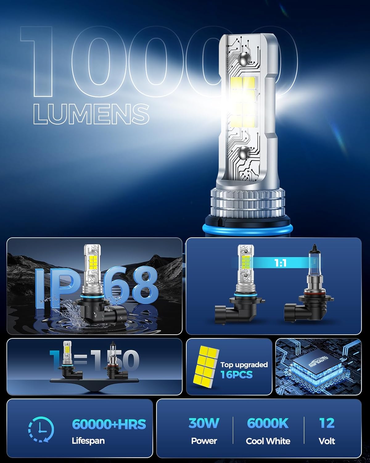 Experience Nighttime Driving Like Never Before with G2S Series H10 led fog light bulbs! With a powerful 10,000 Lumens brightness upgraded, our H10 LED bulbs delivers an impressive 600% clearer and wider view at night compared to the original bulbs.Say goodbye to the struggles of poor visibility and hello to confident, worry-free nighttime driving