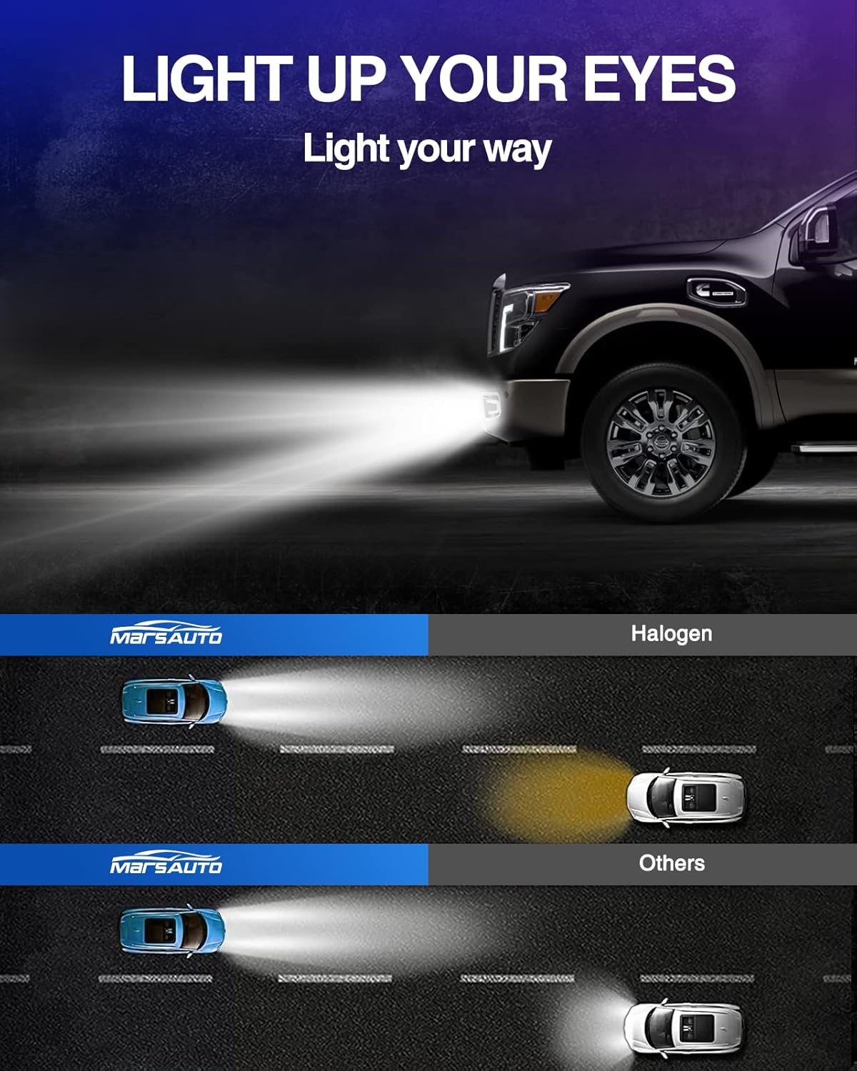 - Safer driving: Double-sided CSP chips and designed base angle form a focused beam and provides a more scientific light pattern to ensure safer driving environment, ditching your yellow and dim stock lights