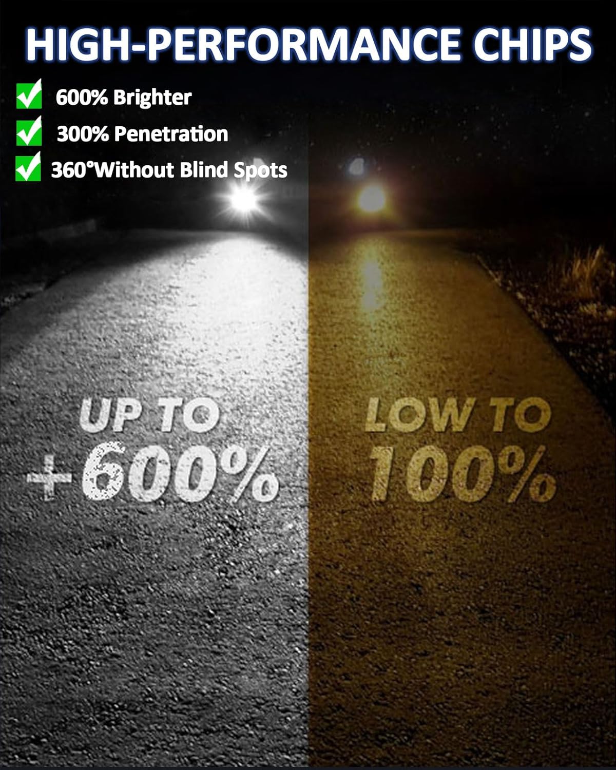 - Enhance Visibility in Rainy&Foggy Days: Adopting advanced 60PCS CSP chips and 360° surround design, without blind spots, more uniform light and a wider field of view, HB4/9006 Fog Light Bulbs brake through adverse weather, ensuring unobstructed progress