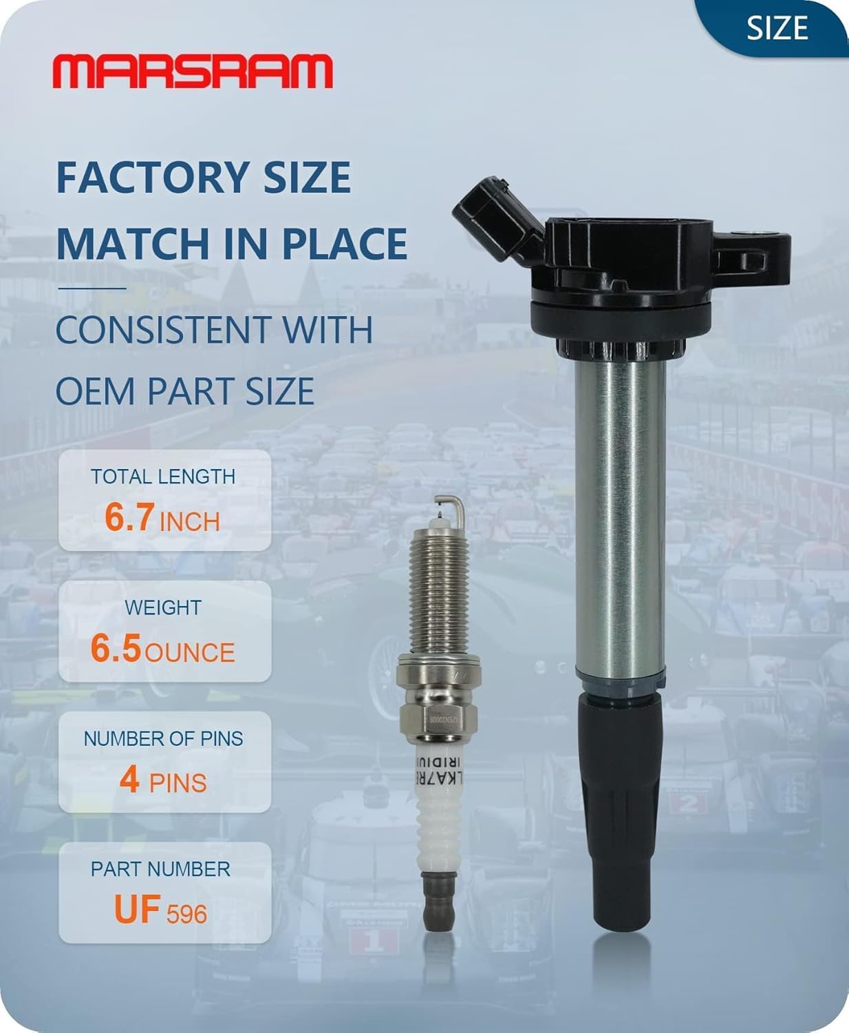 Marsram Ignition Coil Pack Uf596 And Double Iridium Spark Plug 4912 Compatible With 2009-2014 Toyota Corolla Matrix 2010-2017 Prius
