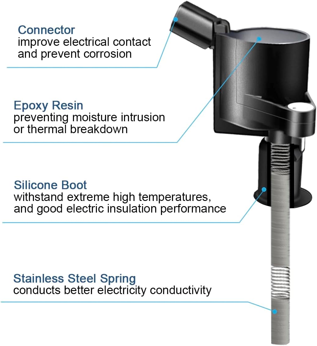 - The ignition coils are easy to install,it use the high grade materials,Each coil is design for specific application,high energy output.High heat resistant compound for our ignition coil on plug boot to withstanding heat stress for longer durability.